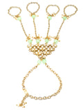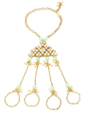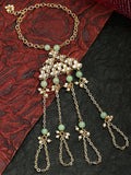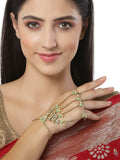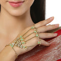 KARATCART Gold Plated Light Green Beads Kundan Hathphool for Women