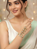 Karatcart Gold Plated Light Green Pearl Beaded Kundan Hathphool