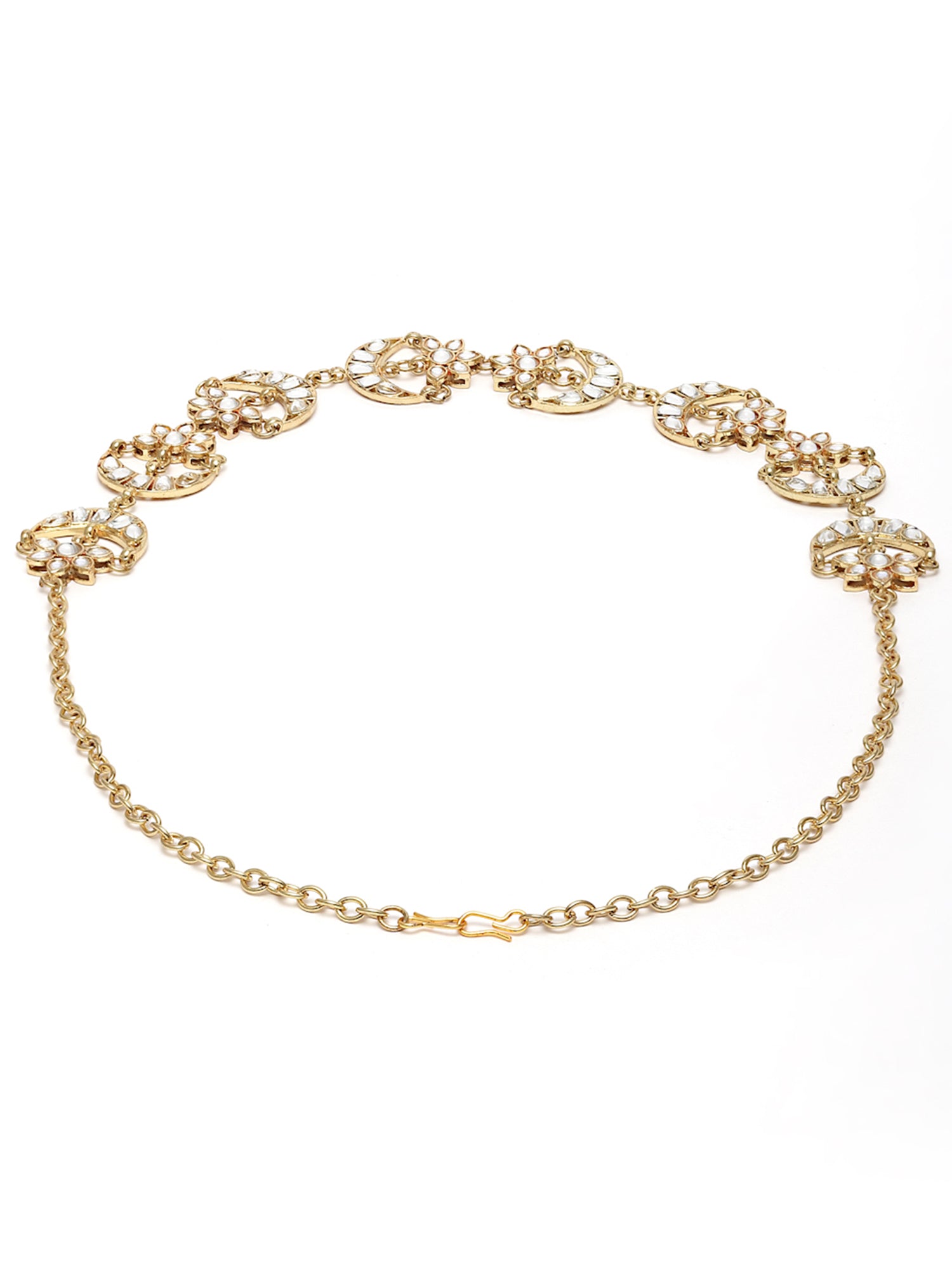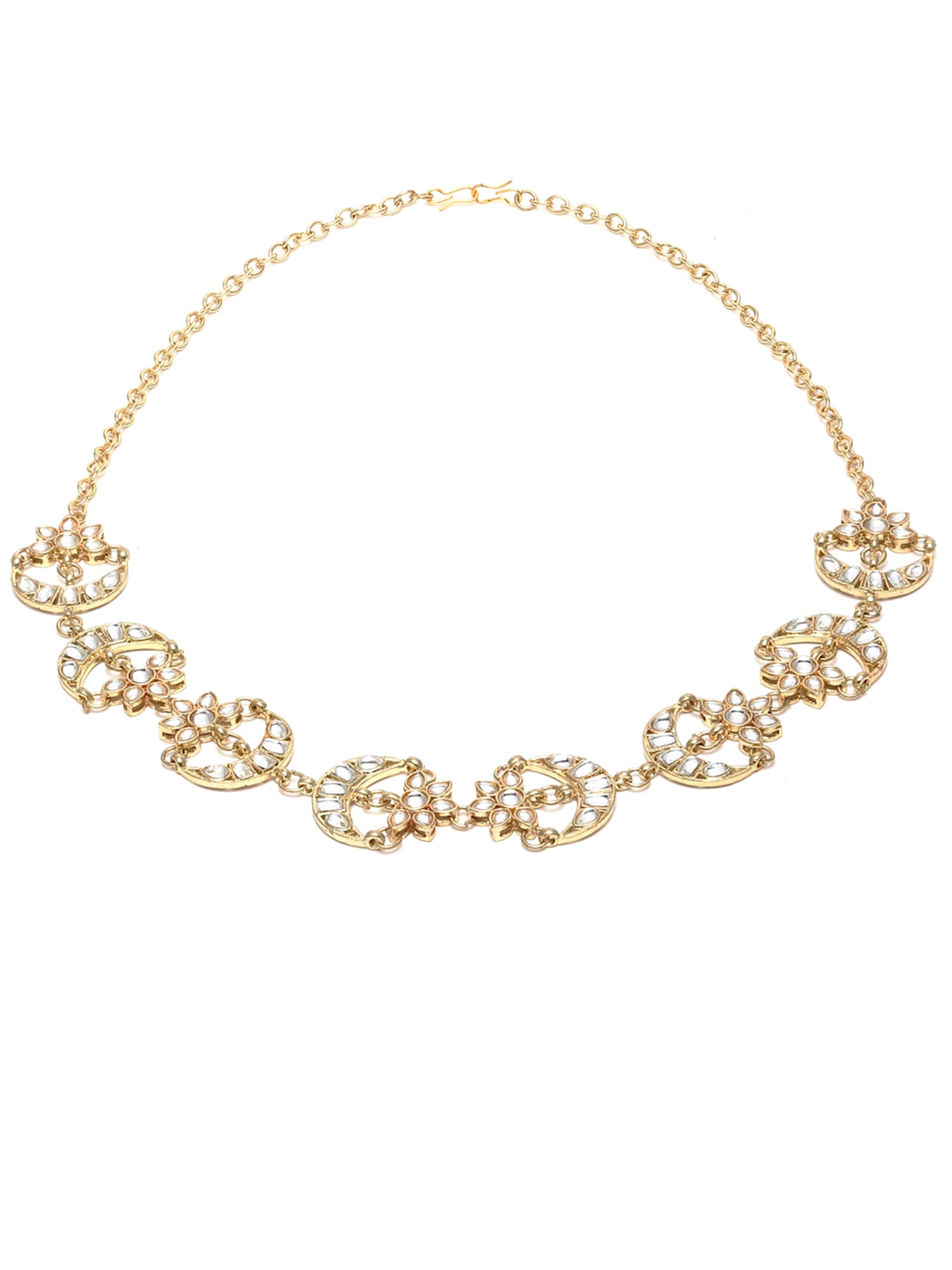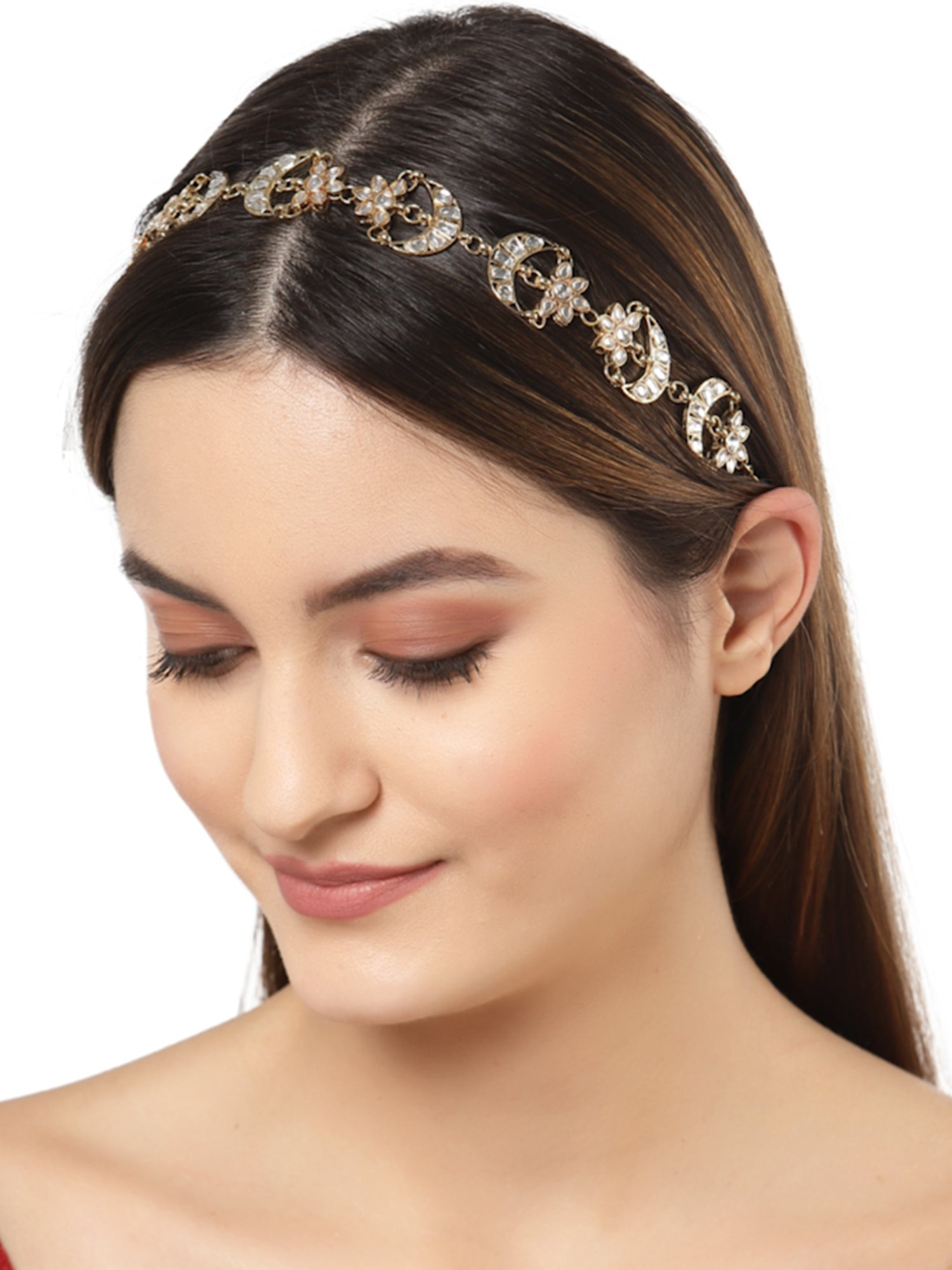 - Karatcart Gold Plated Moon and Flower Shaped Kundan Hairband for Women. It is made with high-quality Kundan Stones which makes them very skin-friendly. Perfect for Weddings, Parties, Festivals, and Traditional Occasions.