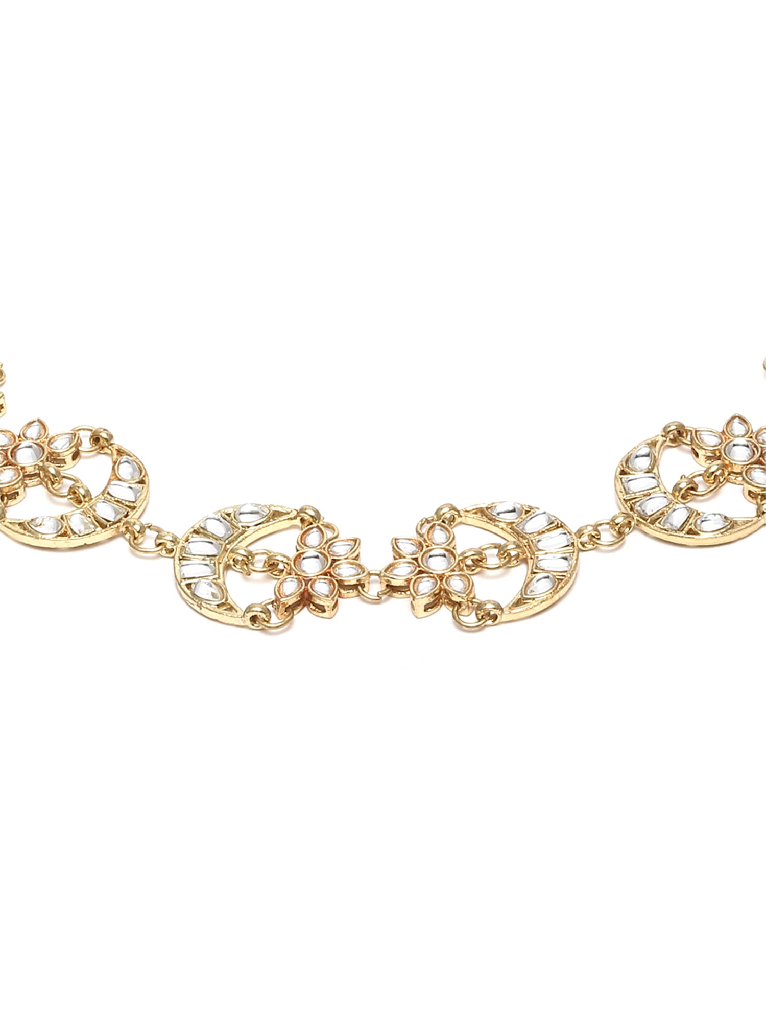 Karatcart Gold Plated Moon and Flower Shaped Kundan Hairband for Women