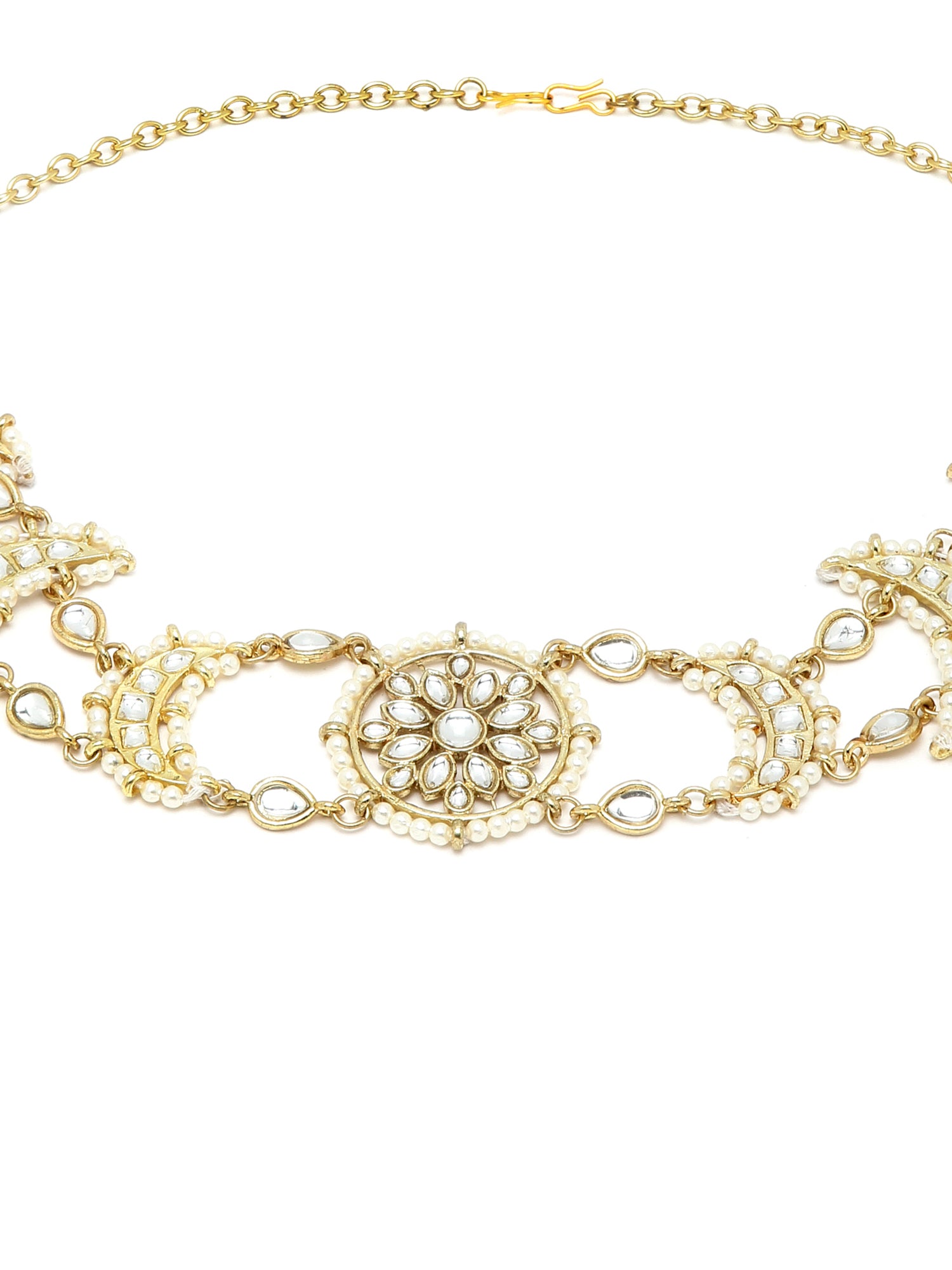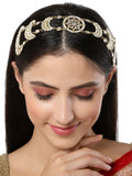 Karatcart Gold Plated Moon Shape Kundan Studded Handcrafted Hairband for Women