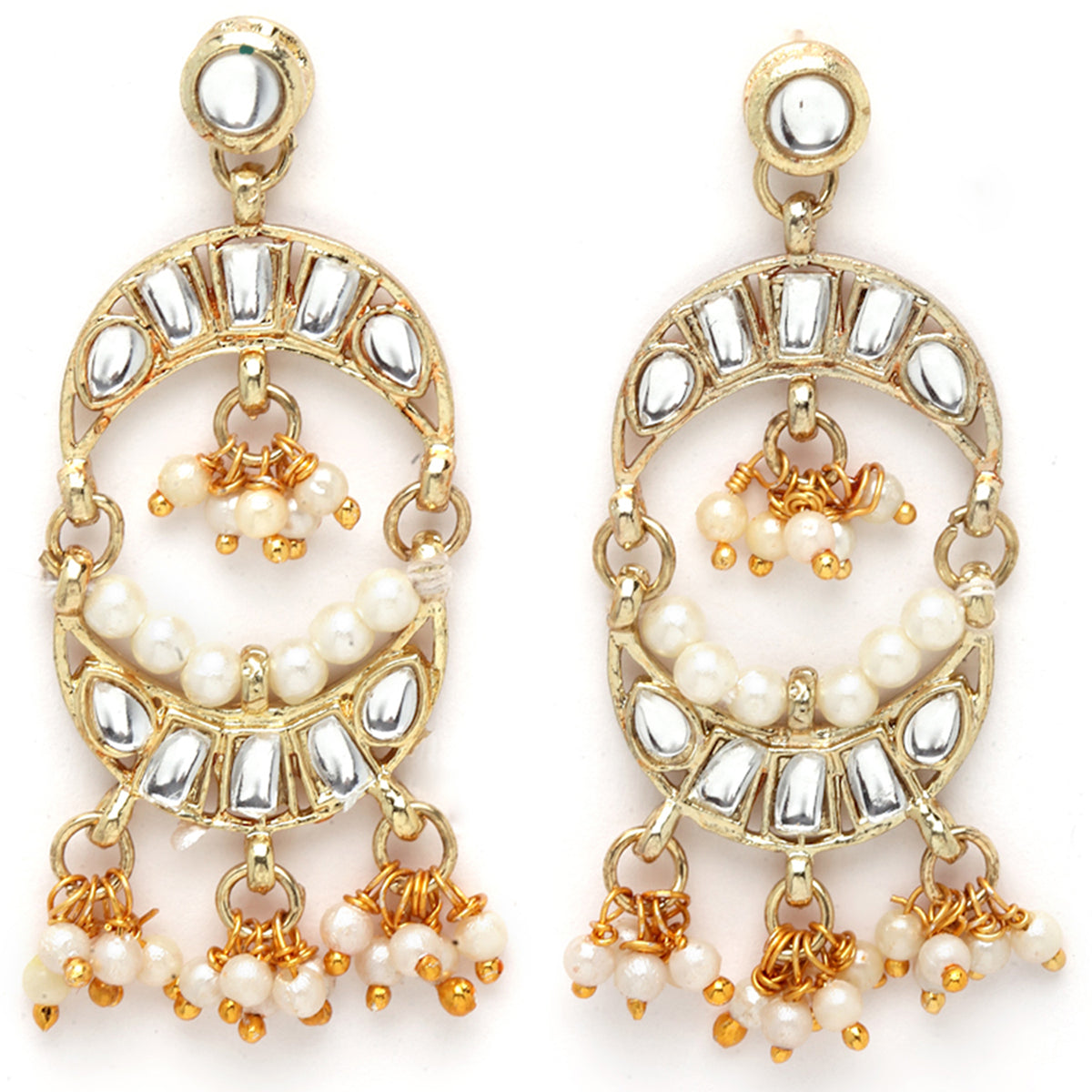 Karatcart Gold Plated Moon Shaped white Kundan Neckalce Setfor Women