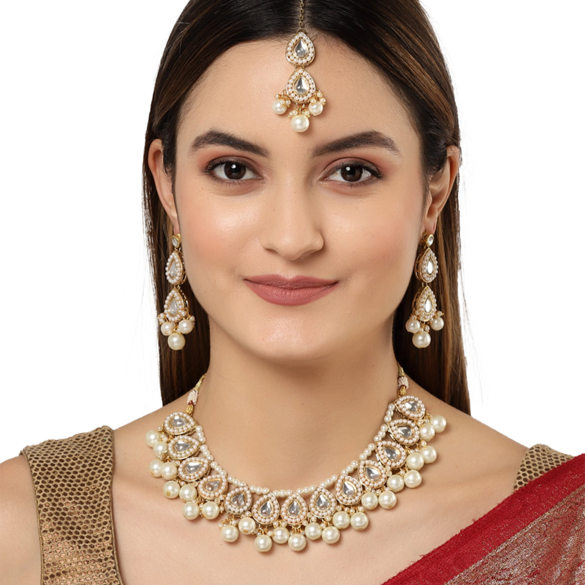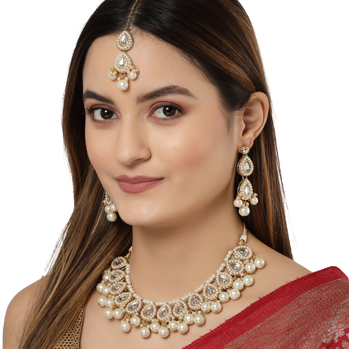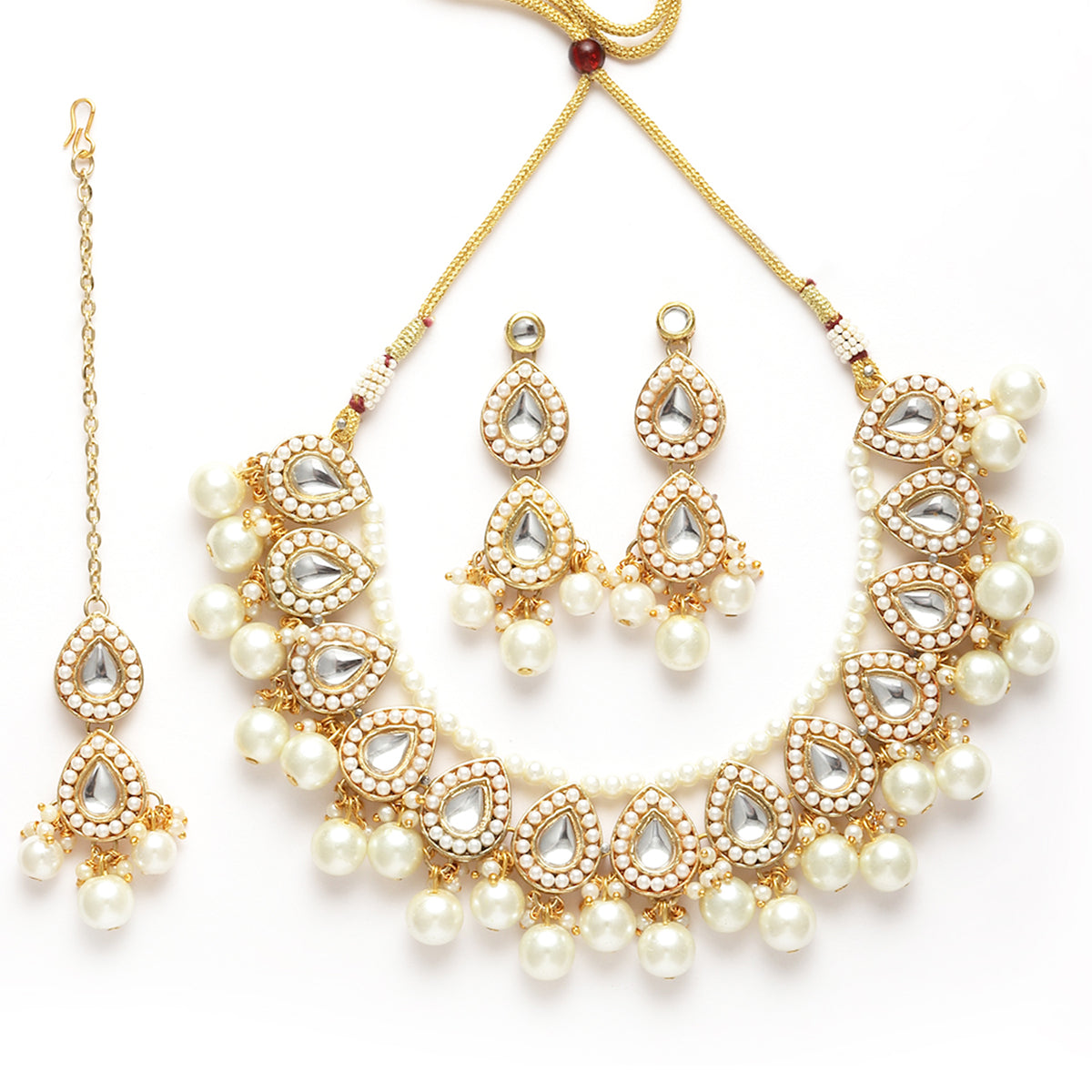 - Karatcart Gold Plated Pearl and Drop Kundan Studded Choker Necklace Set. It is made with high-quality Kundan Stones which makes them very skin-friendly. Perfect for Weddings, Parties, Festivals, and Traditional Occasions. Gracefully pair Saree, Kurti, or any Indo-western outfit to enhance your look. These are made from toxic-free materials which are Anti-Allergic and Safe for the skin.