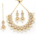 Karatcart Gold Plated Pearl and Drop Kundan Studded Choker Necklace Setfor Women