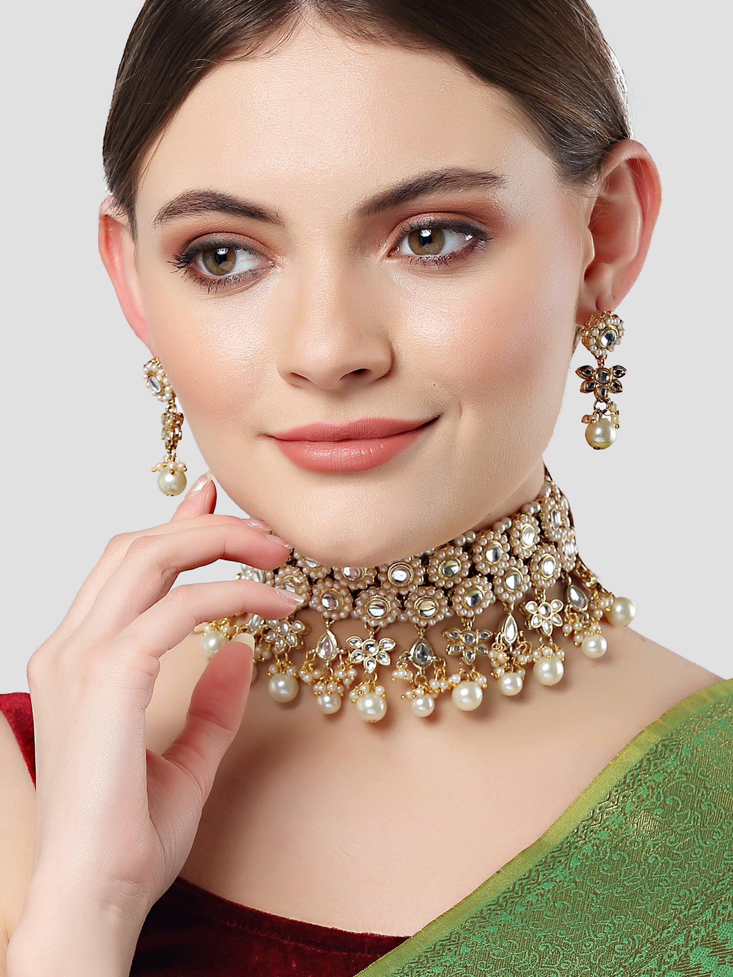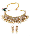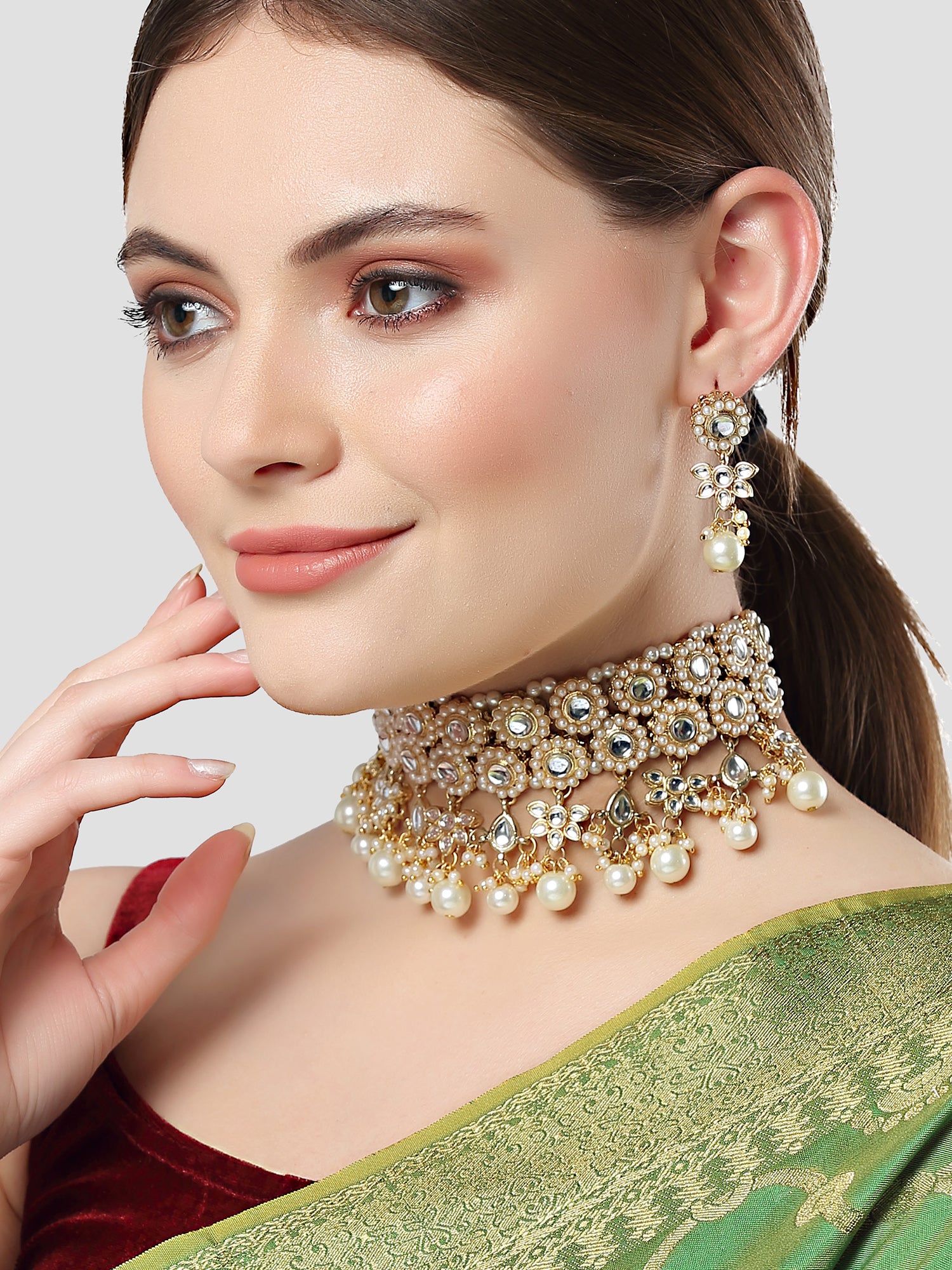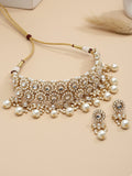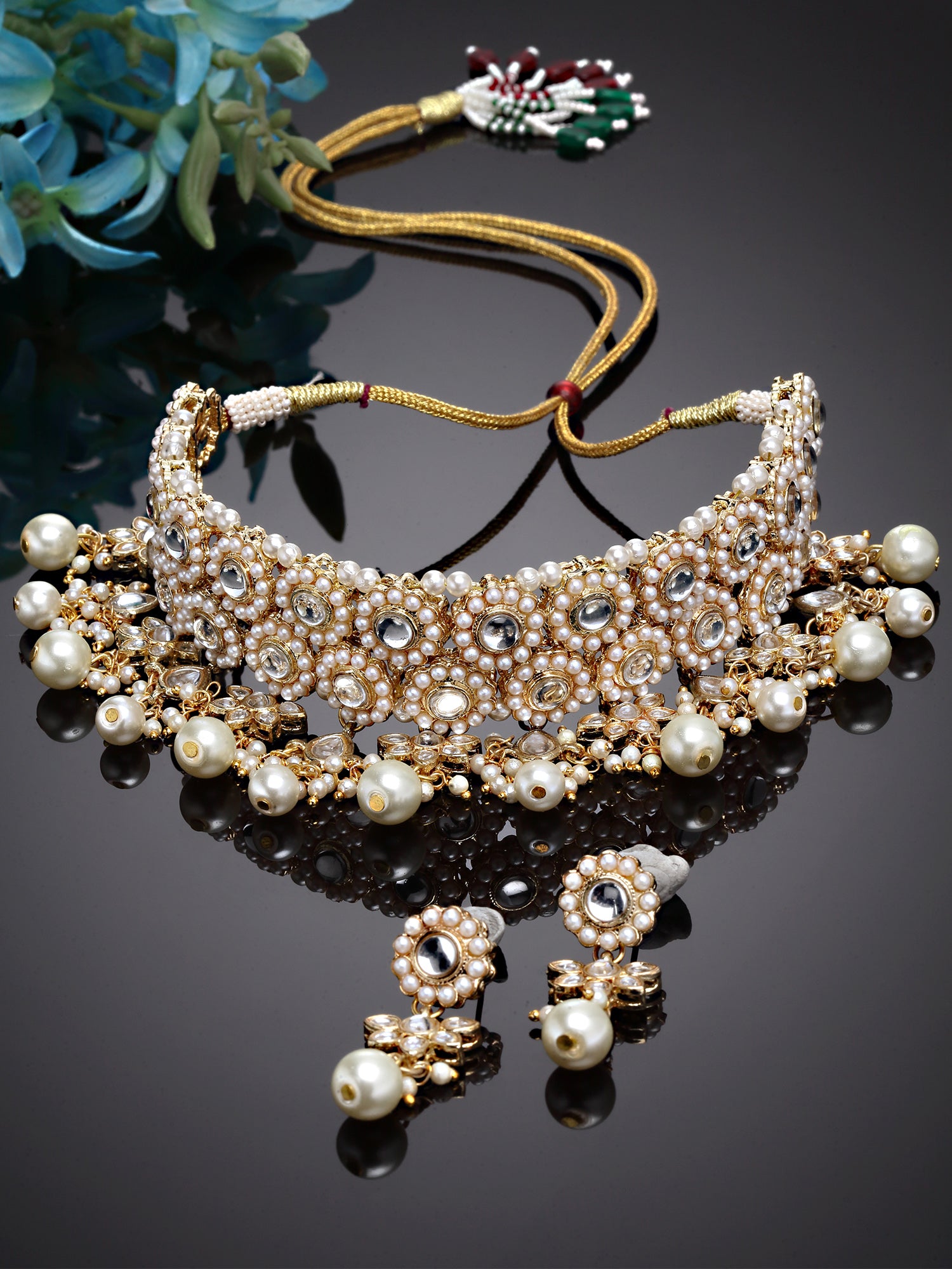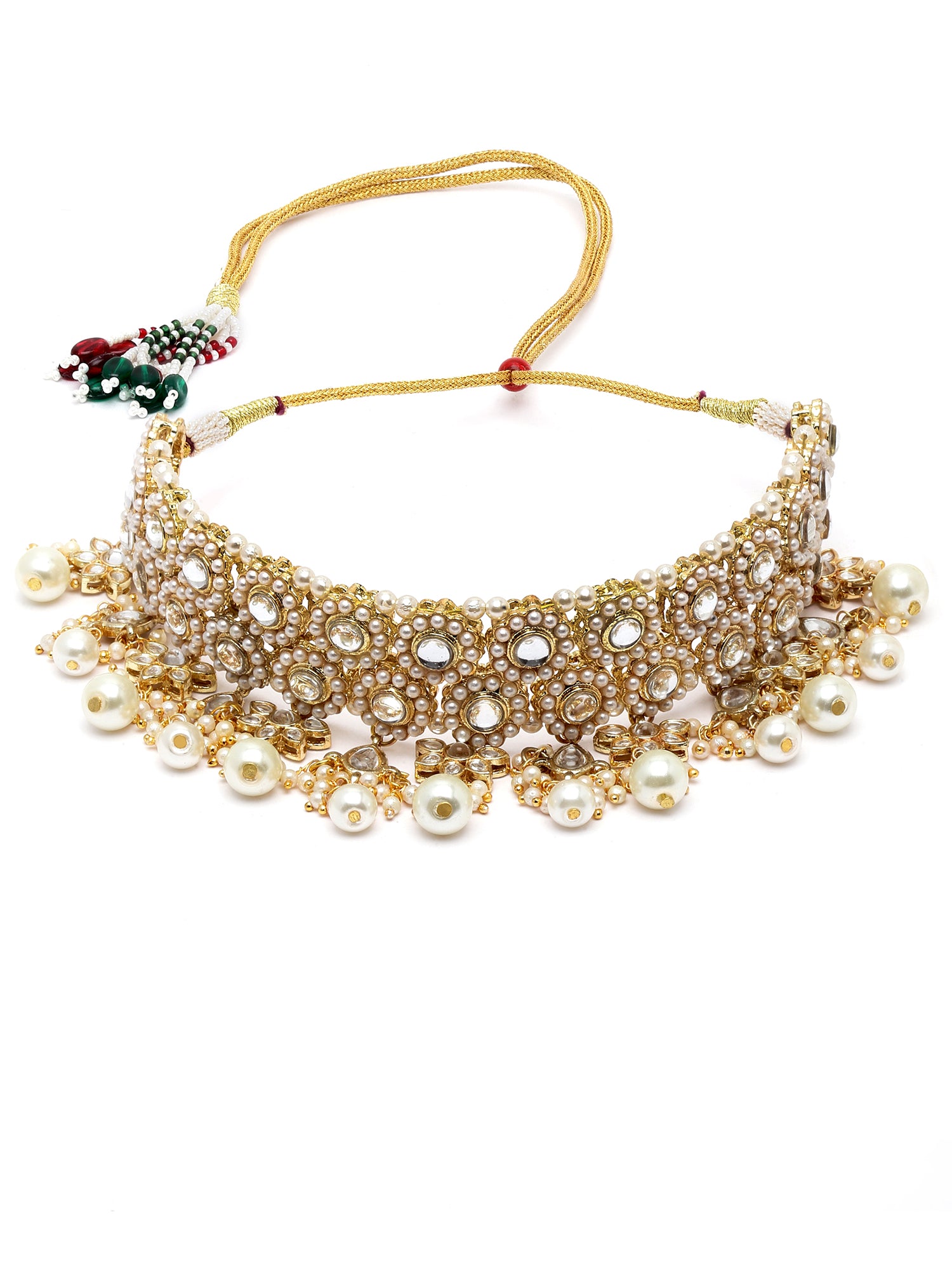 Karatcart Gold Plated Pearl and Kundan Studded Choker Necklace Set for Women