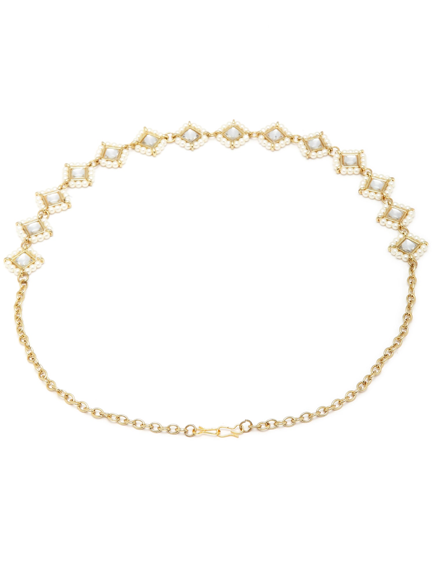 - Karatcart Gold Plated Pearl Beaded Kundan Hairband for Women. It's Five Layer Embellished with Kundan for High Durability. Intricate high polish creates glamorous reflections and adds a luxurious look. Perfect for Weddings, Festivals, Traditional Occasions. Best when paired with any Indian outfit.