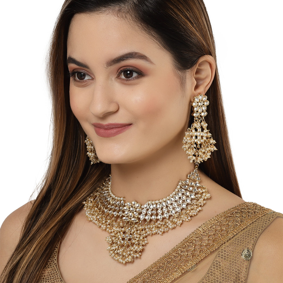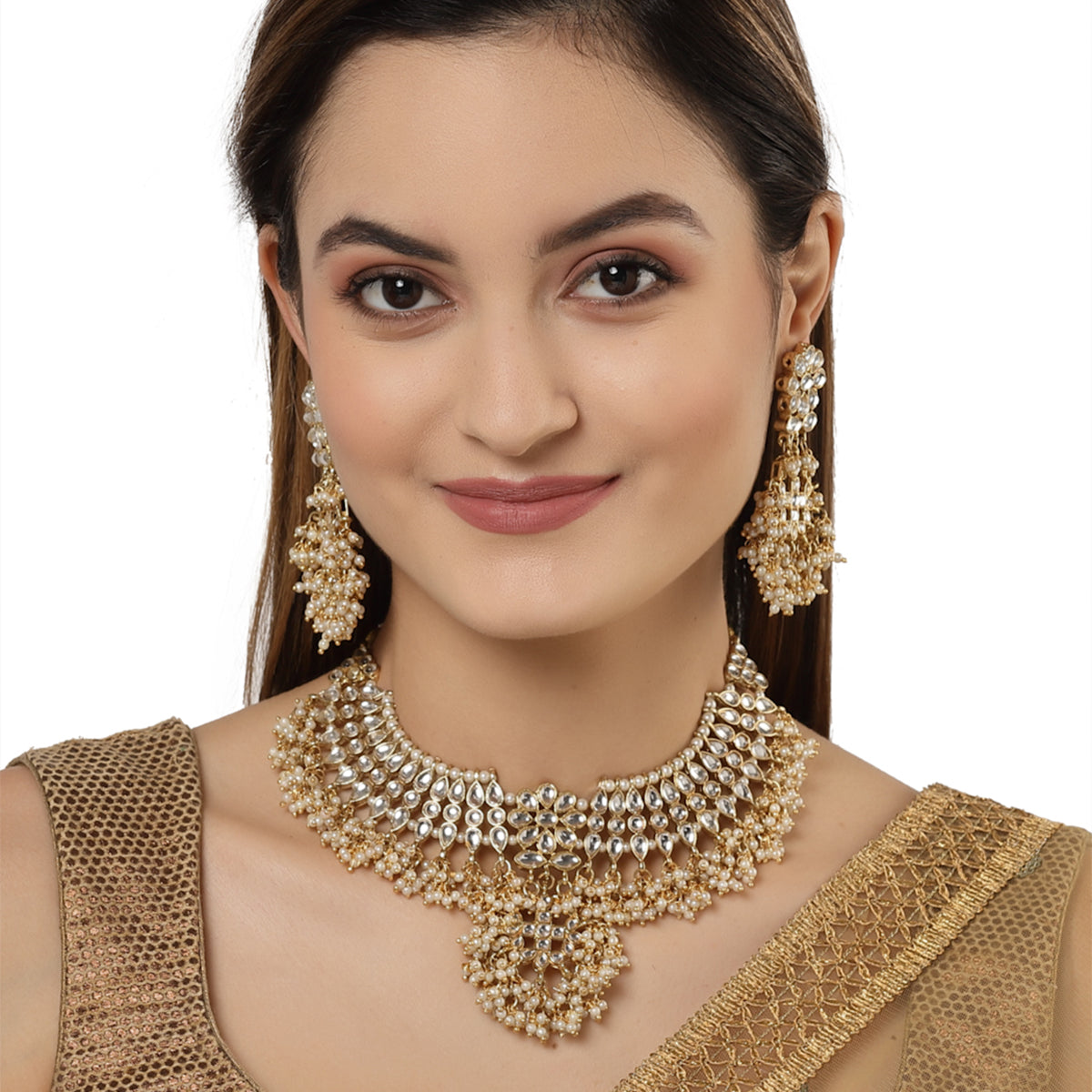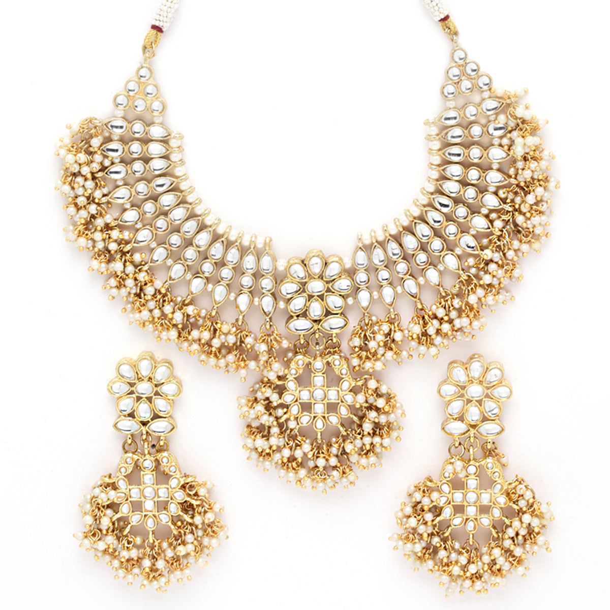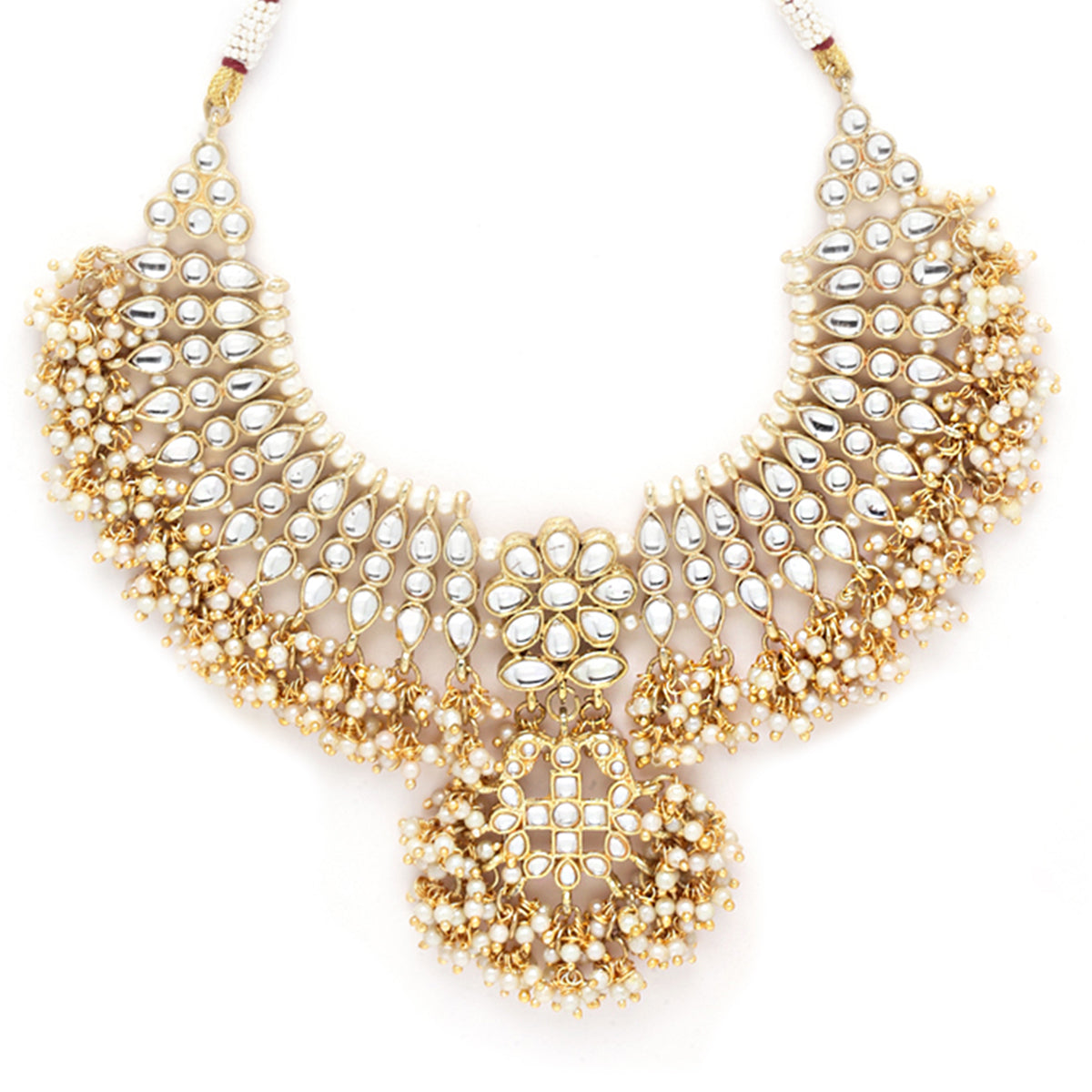 - Karatcart Gold Plated Tassel Pearl Kundan Choker Necklace Set . It is made with high-quality Kundan Stones which makes them very skin-friendly. Perfect for Weddings, Parties, Festivals, and Traditional Occasions. Gracefully pair Saree, Kurti, or any Indo-western outfit to enhance your look. These are made from toxic-free materials which are Anti-Allergic and Safe for the skin.