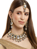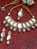 Karatcart Grey Tumble Studded Polki Kundan Choker Necklace Set For Women