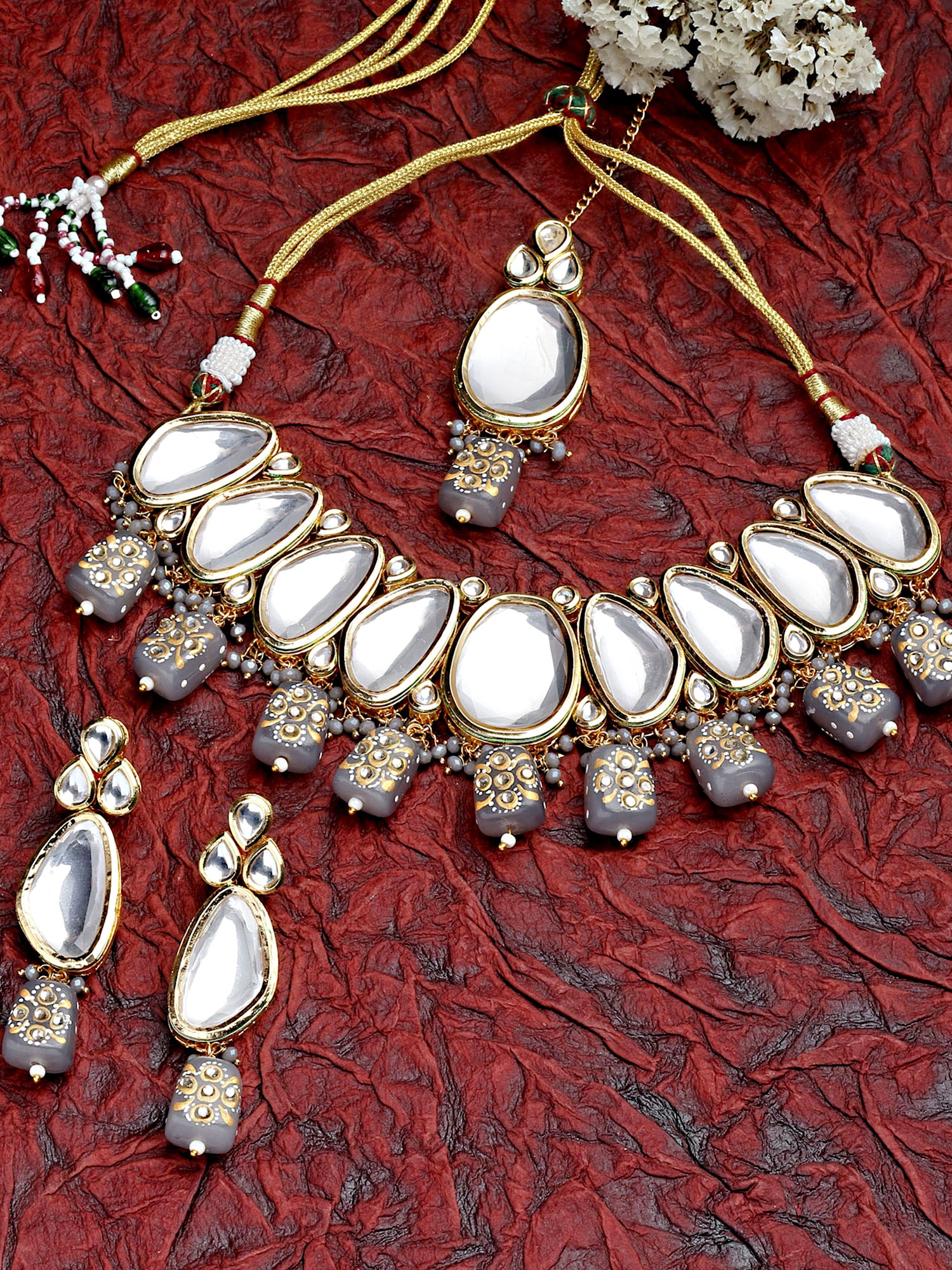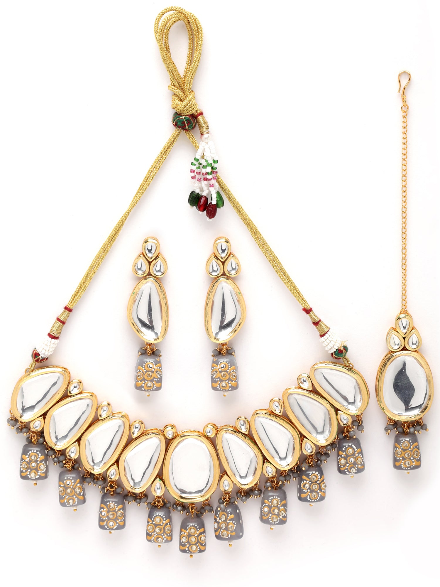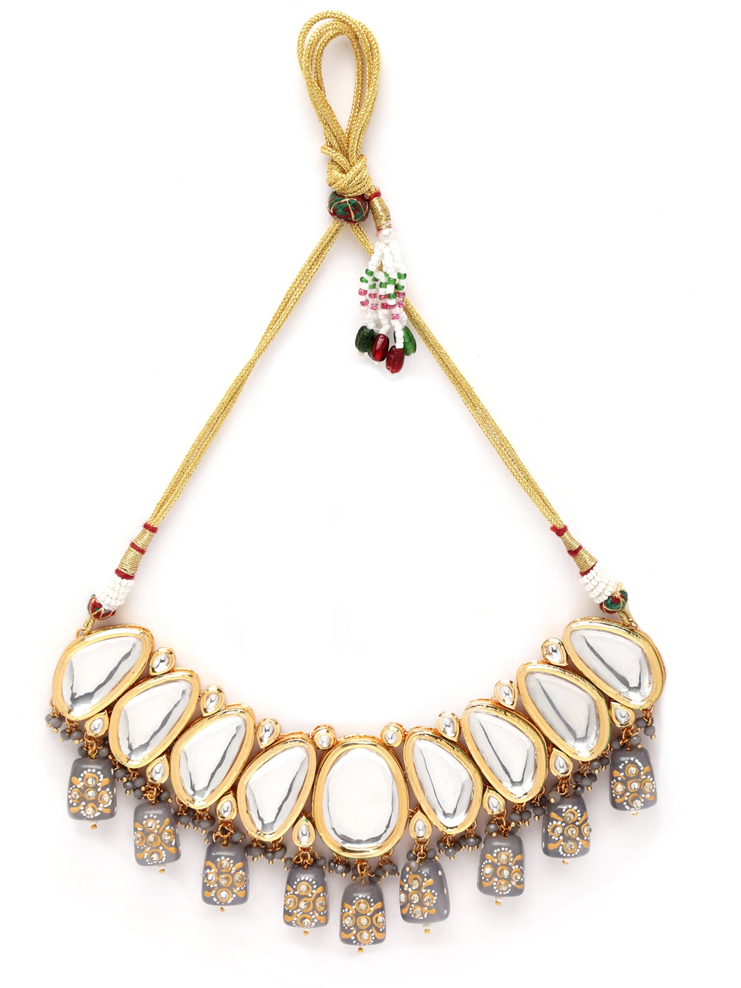 - SGrey Tumble Studded Polki Kundan Choker Necklace Set For Women. It is made with High-Quality AAA Cubic zirconia. Perfect for Weddings, Parties, Festivals, and Traditional Occasions.