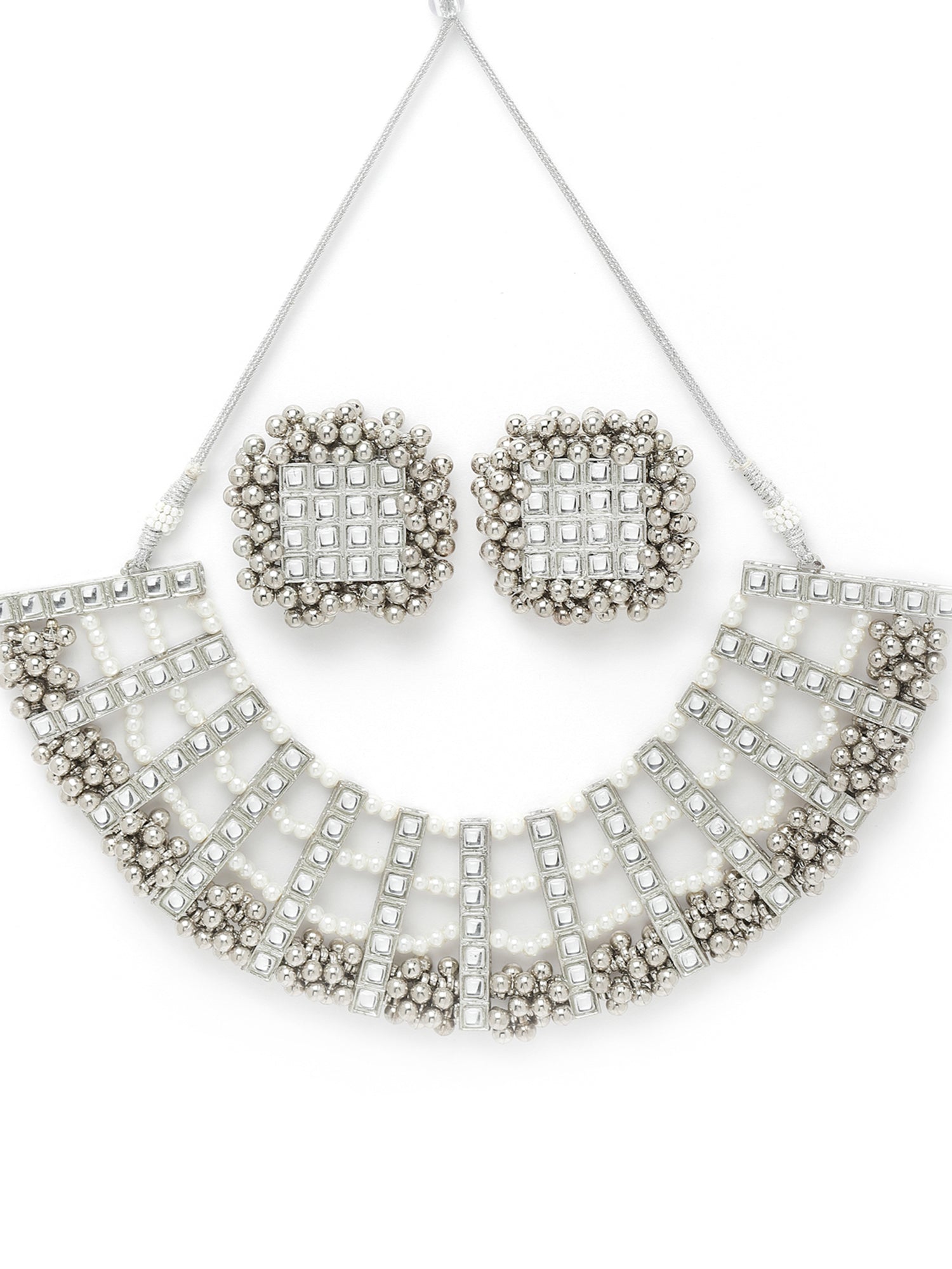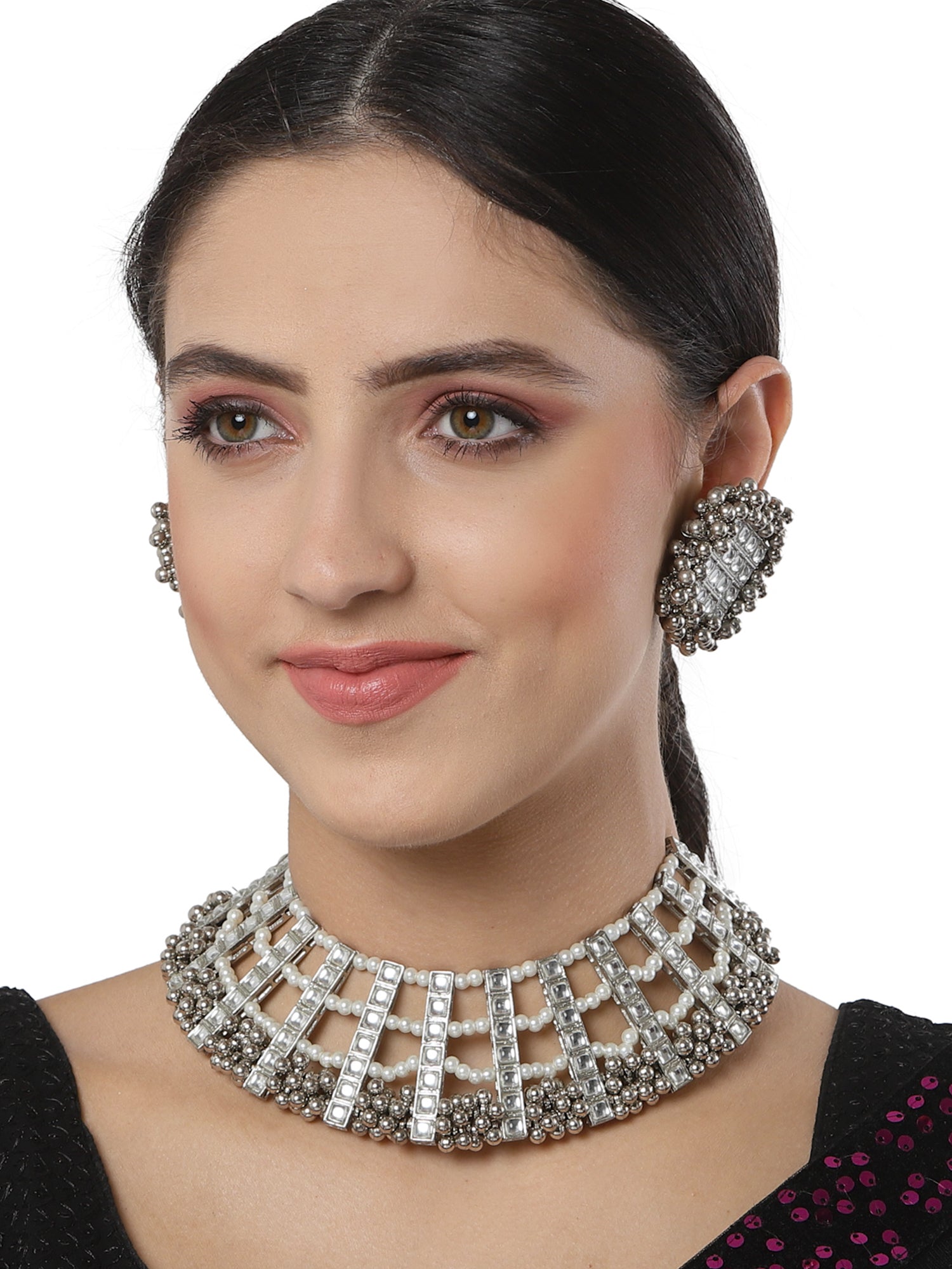 Karatcart Handcrafted Oxidised Silver Kundan Choker Necklace Set