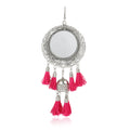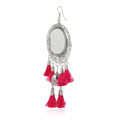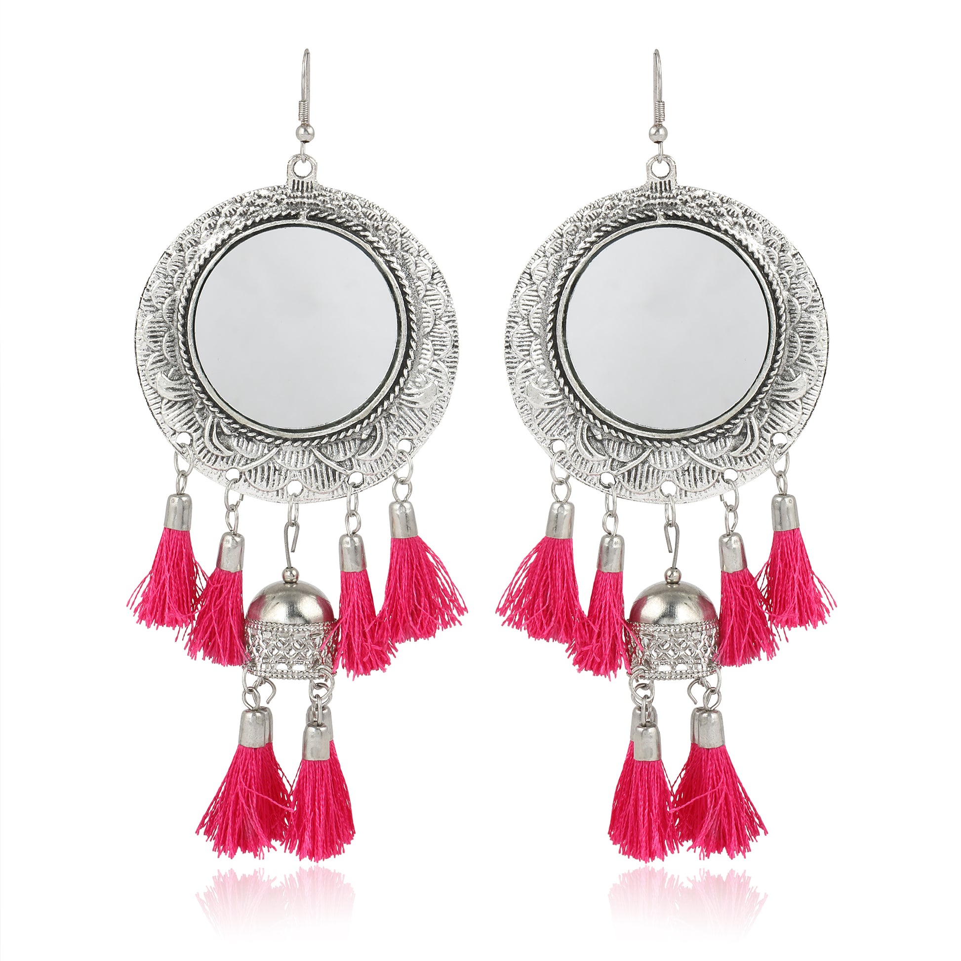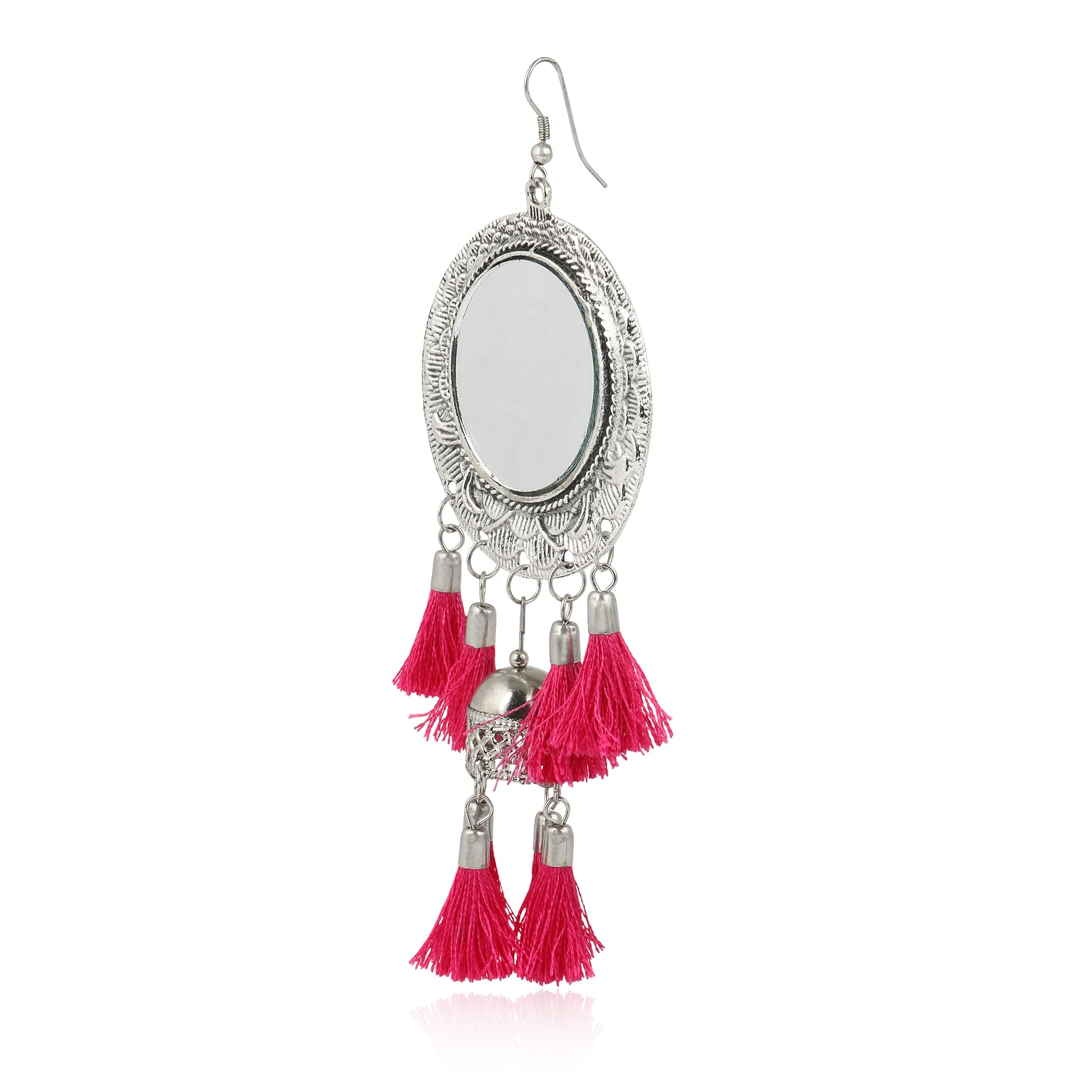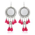 - Karatcart Jaipuri Designer Vintage Oxidised German Silver Tribal Dangler Hanging Mirror Earring Antique Jewellery for Women