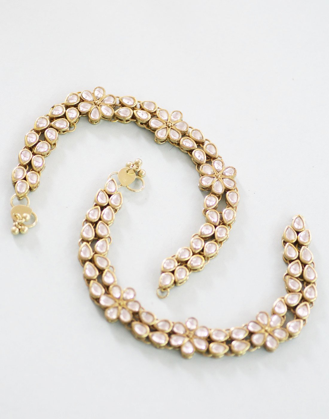 - Karatcart Kundan Flower Anklet Set is a unique anklet on its own. Made by joining small Kundan's together it has super flexibility and can be worn by women of every foot size. If you are an Anklet Fan this is just the right product for you.