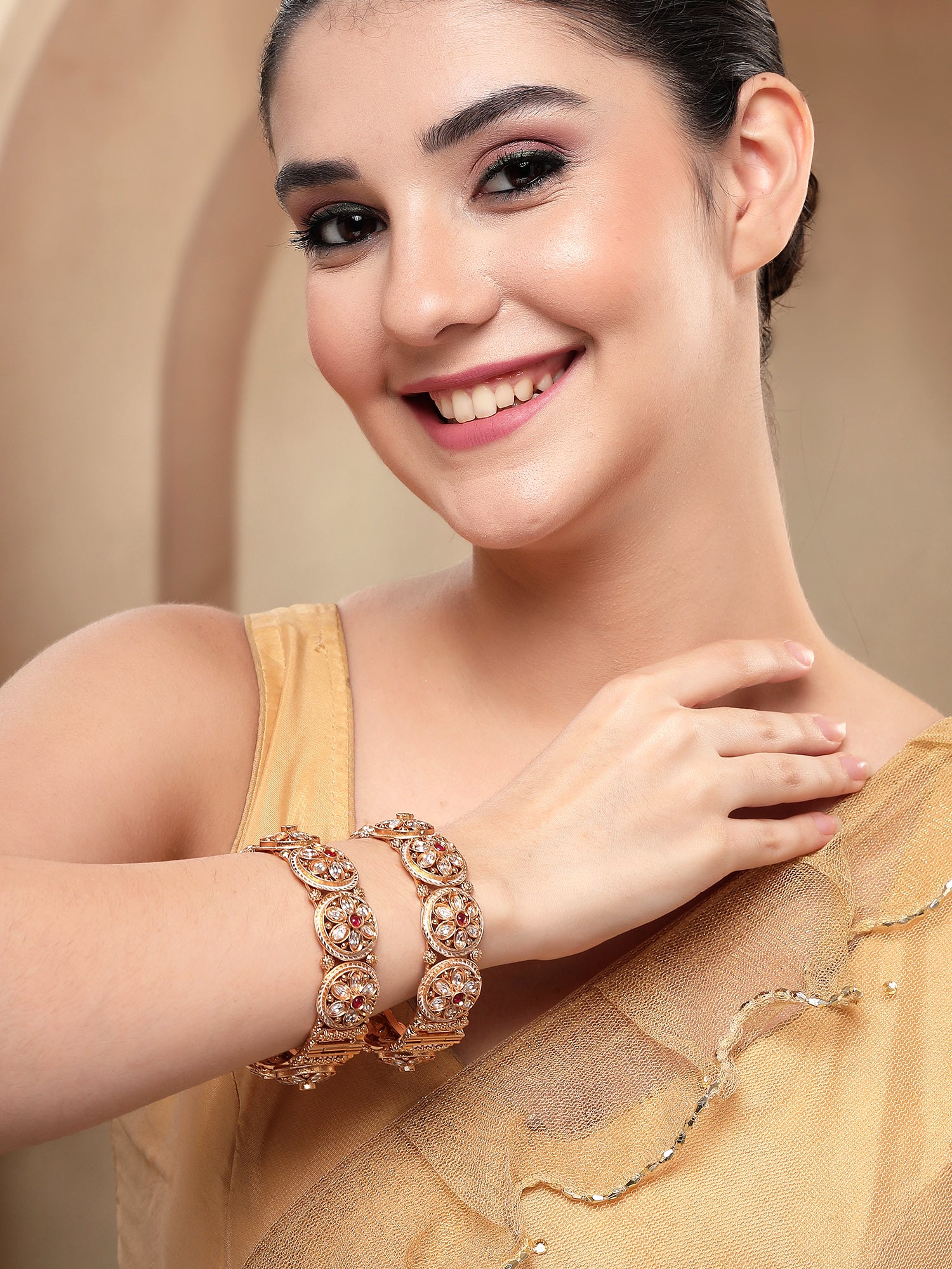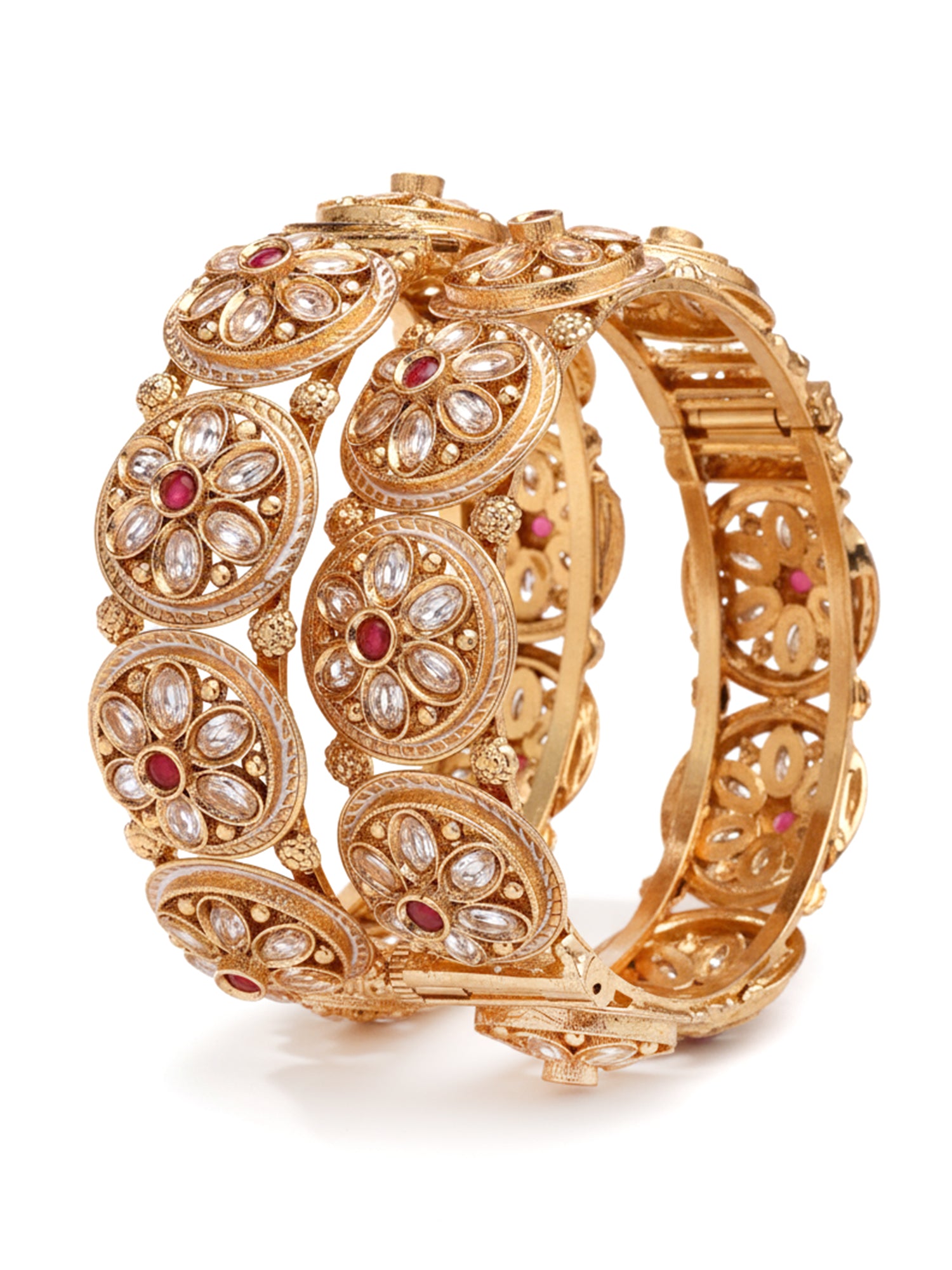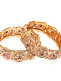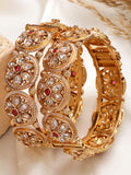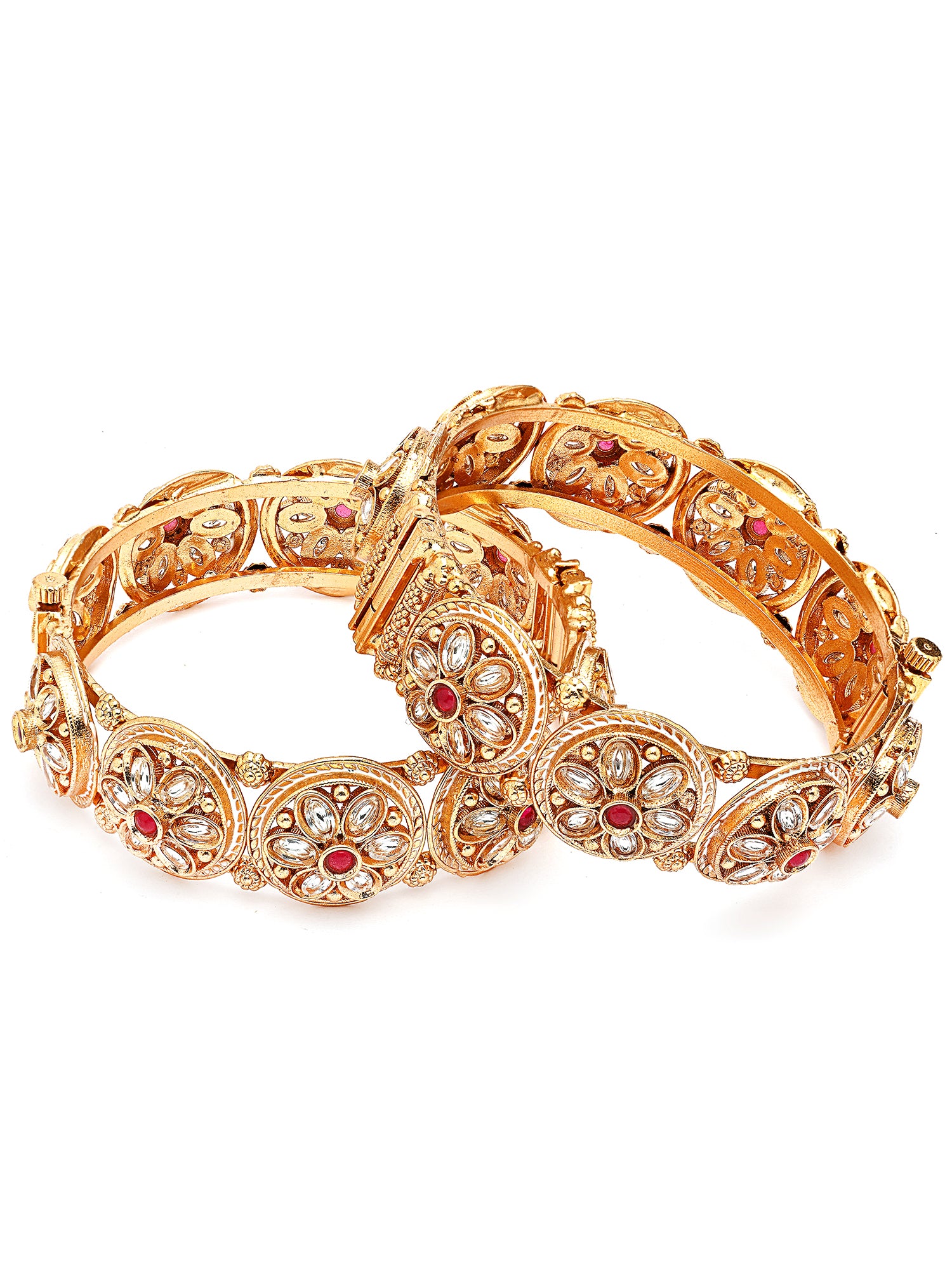 KARATCART Luxurious Gold-Plated Red and White Stone Floral Design Rajwadi Bangles for Women