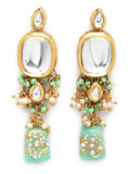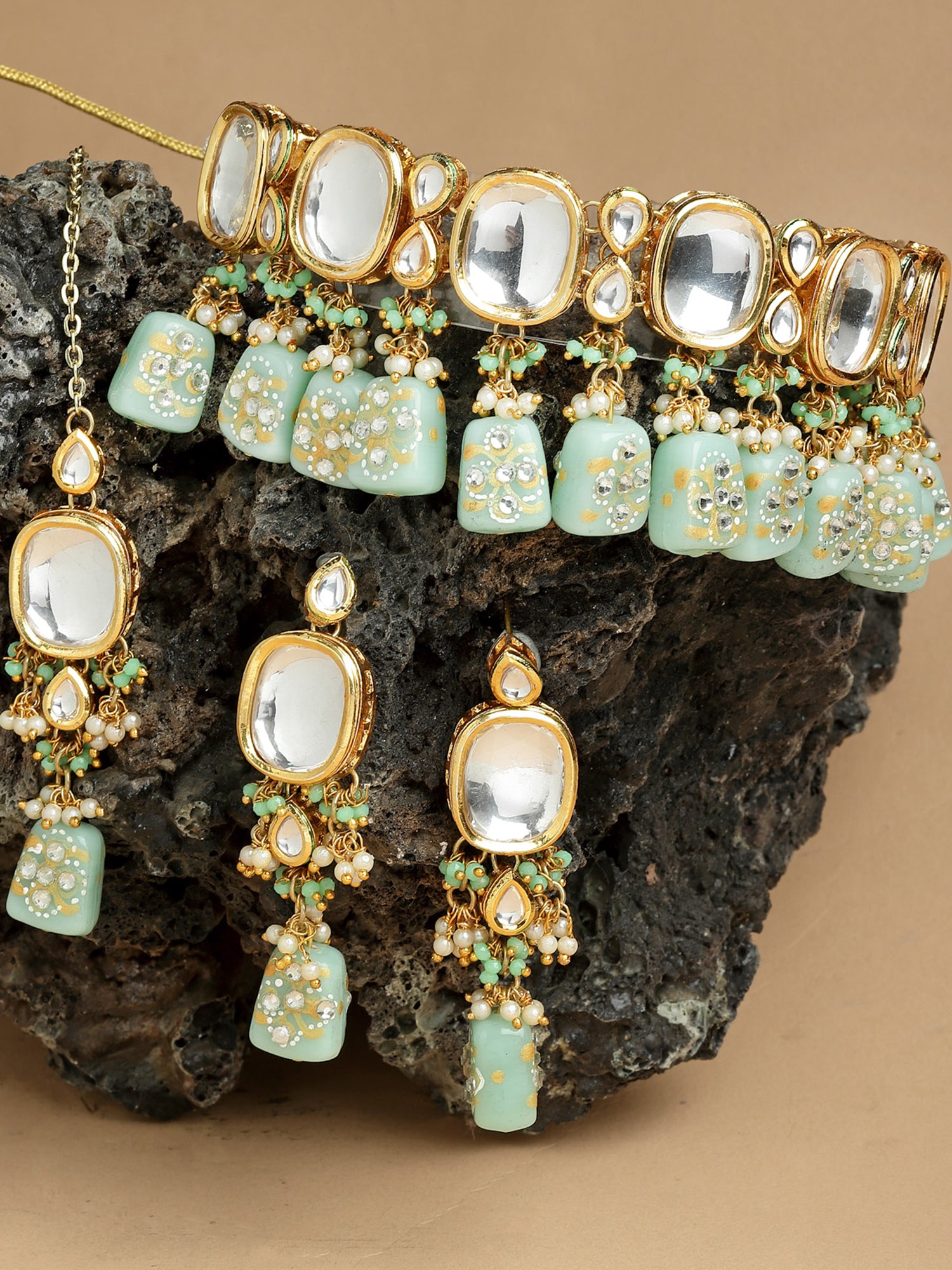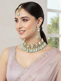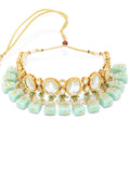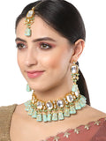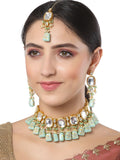 Karatcart Mint Green Designer Tumble Sqare Polki Kundan Necklace Set