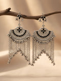 Karatcart Oxidised Silver Black Kundan Chandbali Earrings with Tasselsfor Women