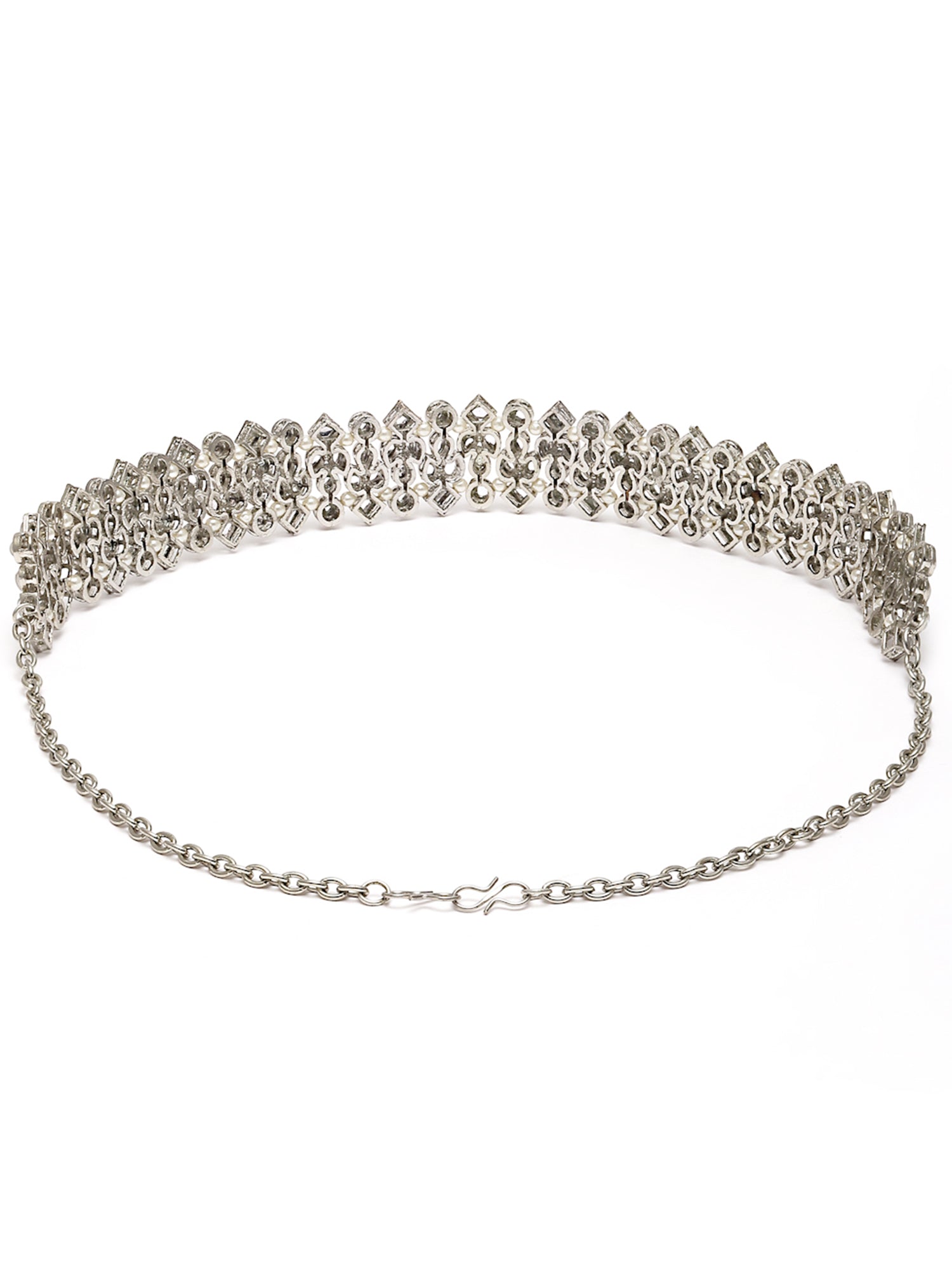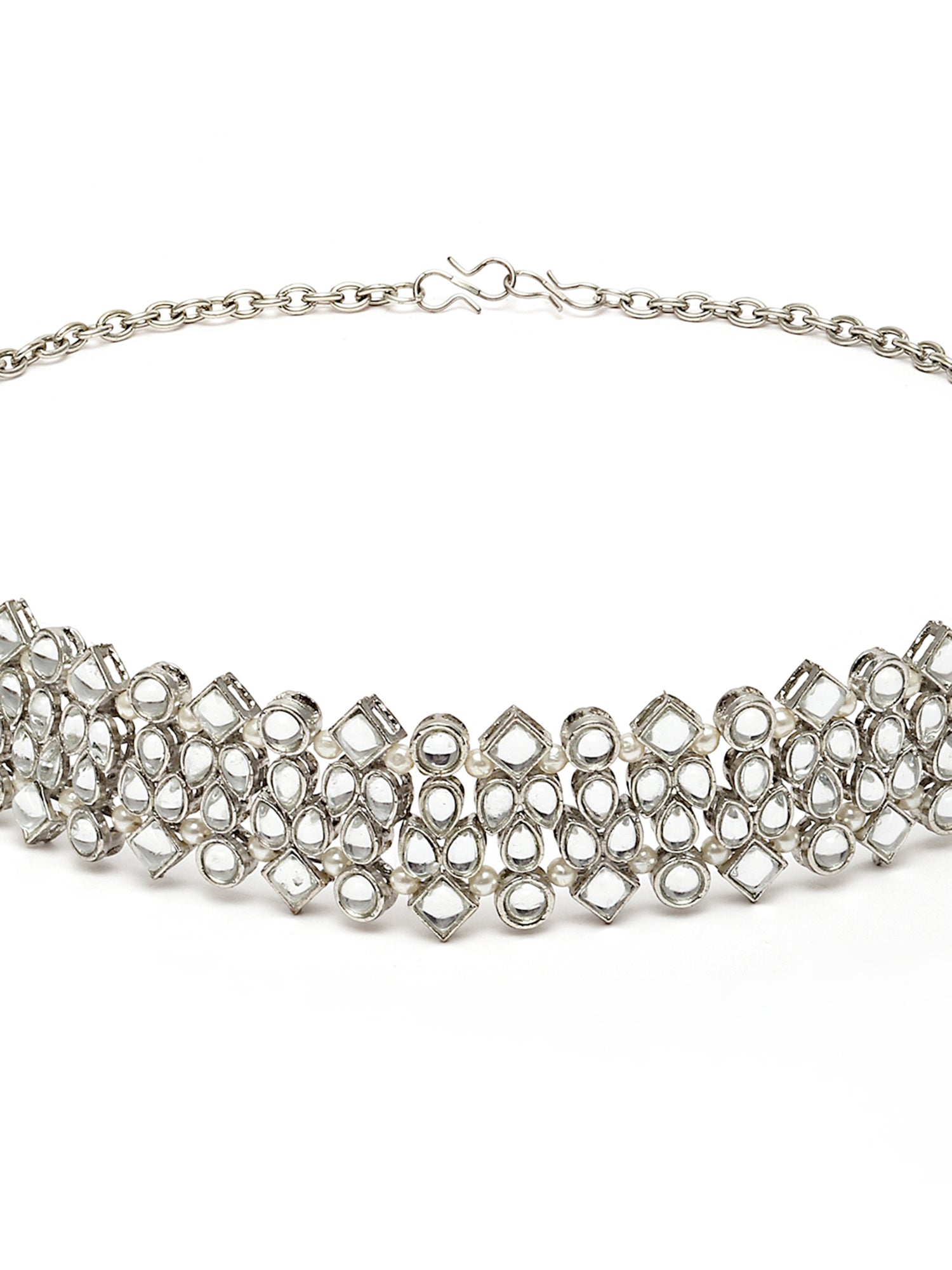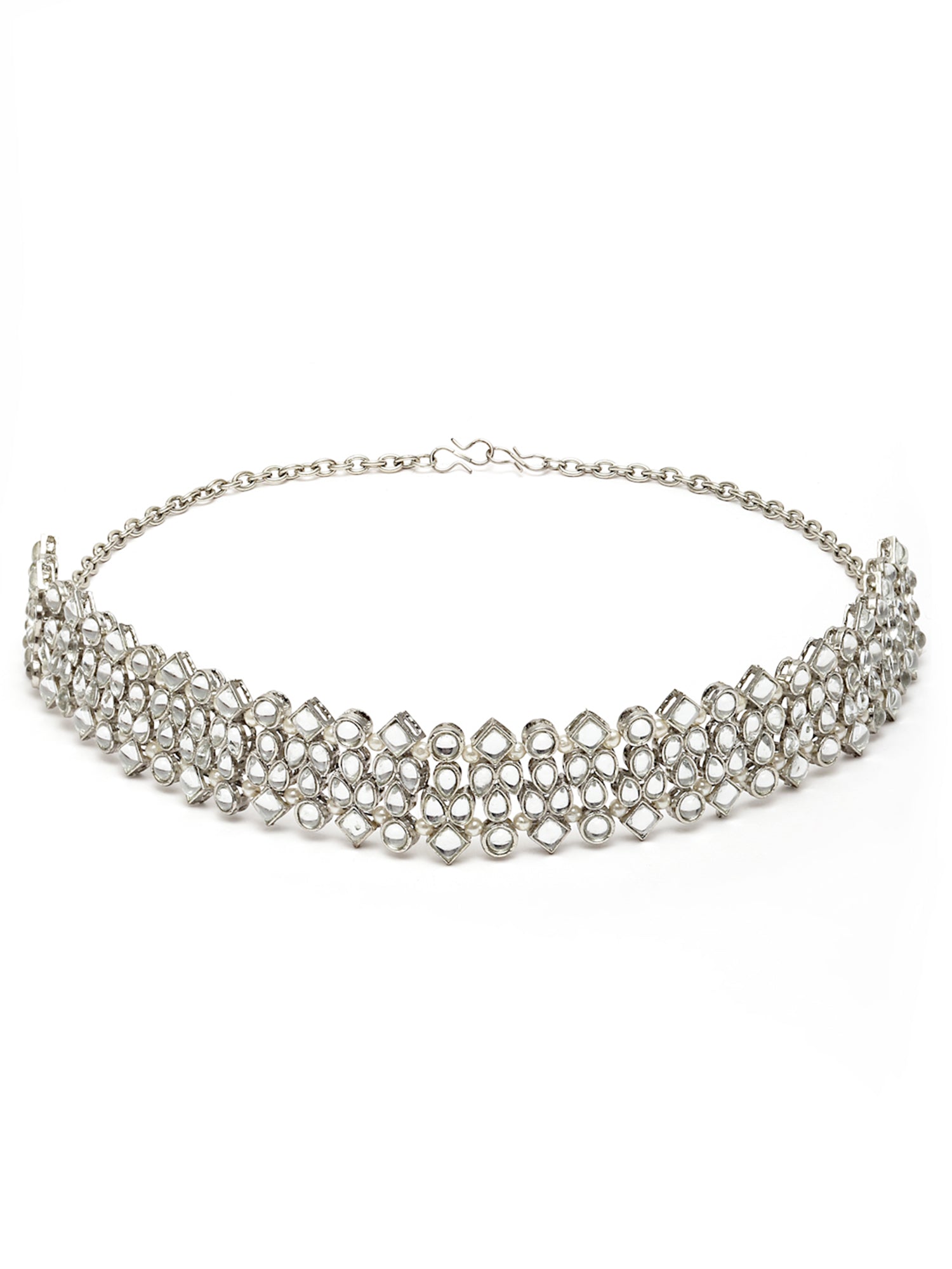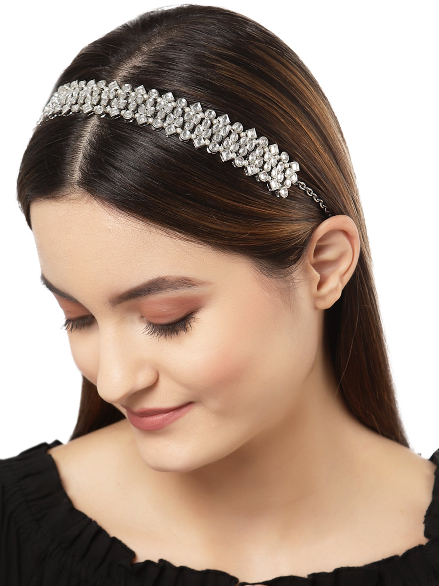 - Karatcart Oxidised Silver Embellished White Kundan Hairband for Women. It is made with high-quality Kundan Stones which makes them very skin-friendly. Perfect for Weddings, Parties, Festivals, and Traditional Occasions.