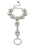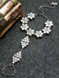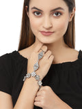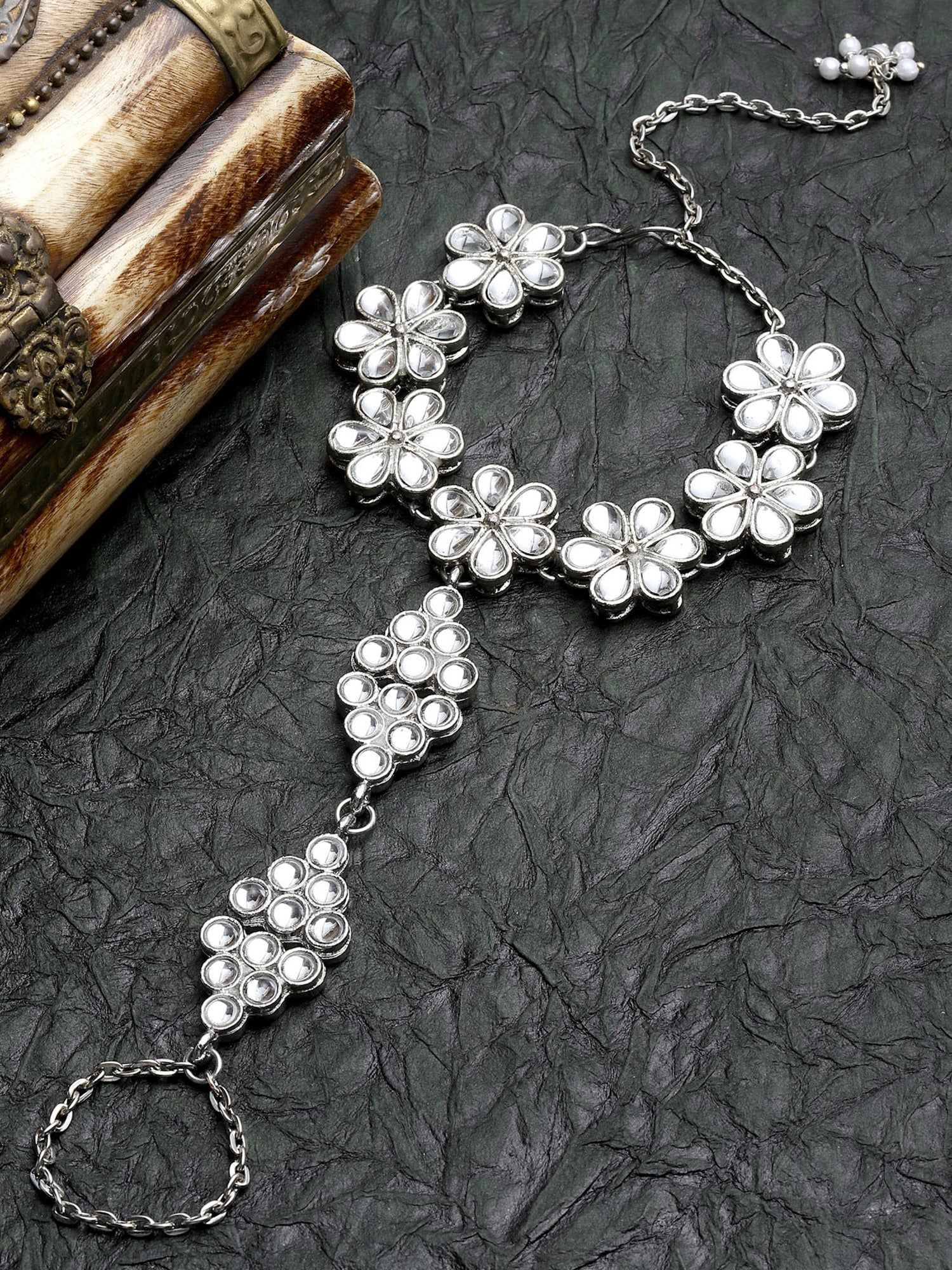 Karatcart Oxidised Silver Floral Kundan Chain Hathphool for Women