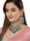 Karatcart Oxidised Silver Green Tumble Floral Shape Necklace Setfor Women