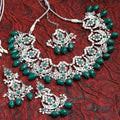 Karatcart Oxidised Silver Green Tumble Kundan Choker Necklace Setfor Women