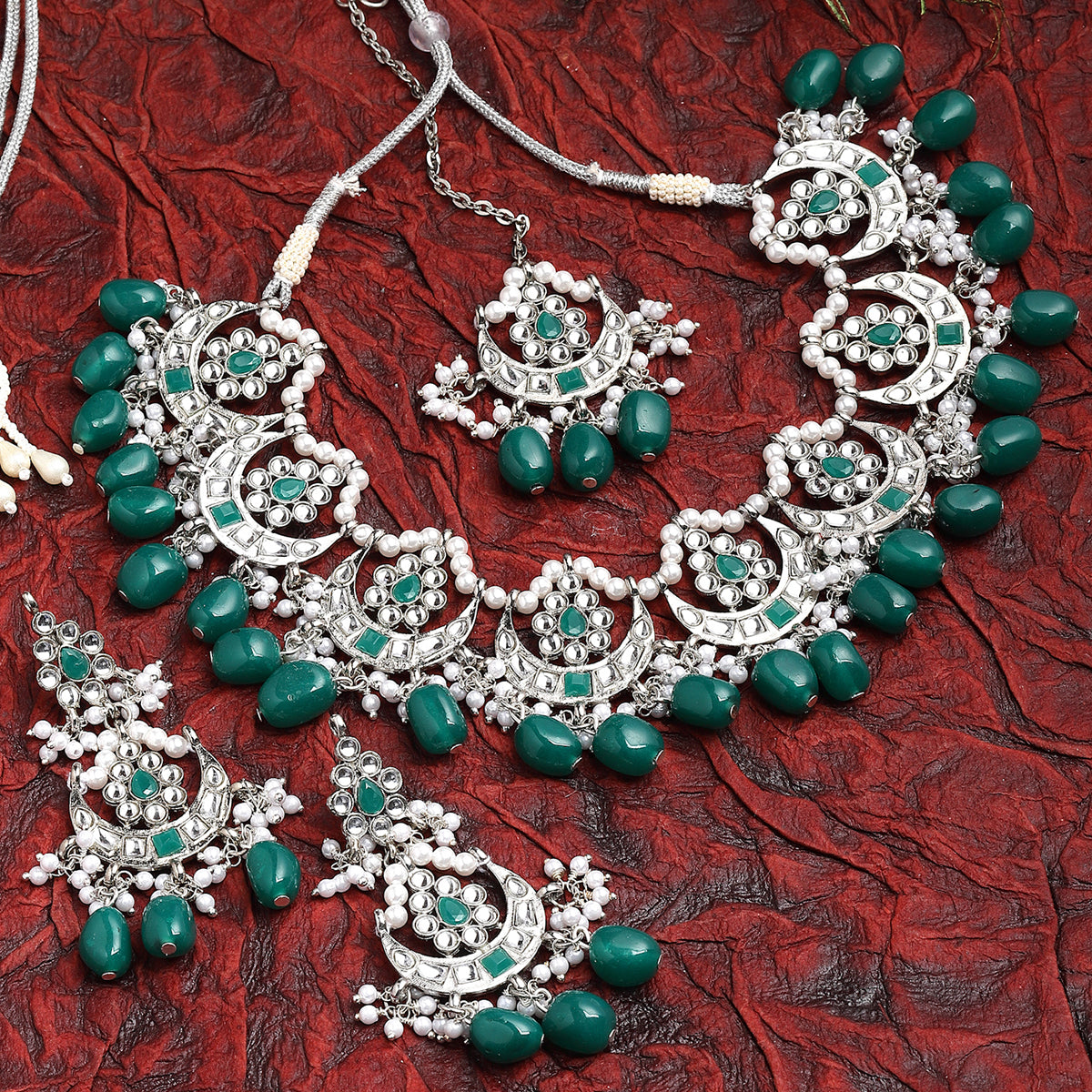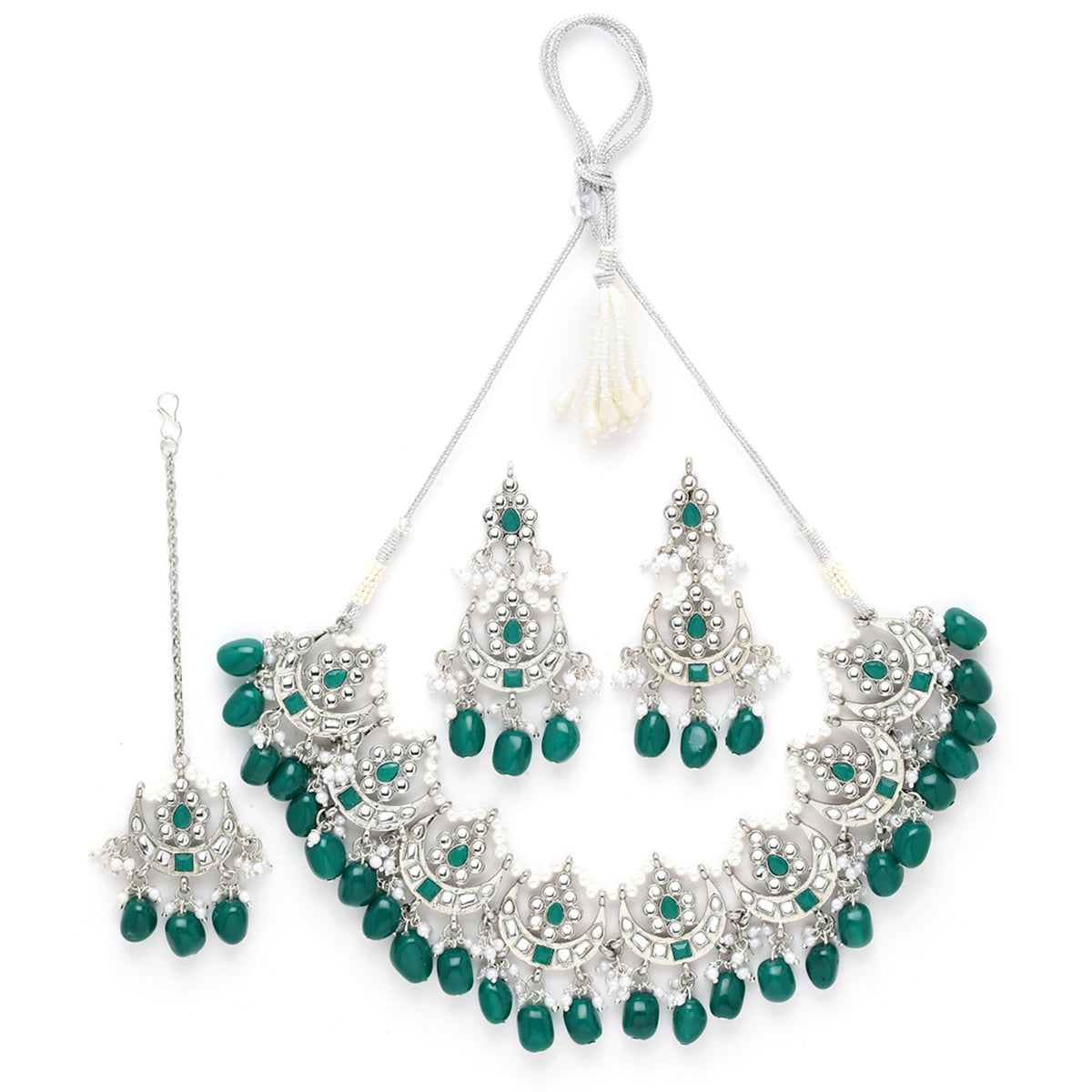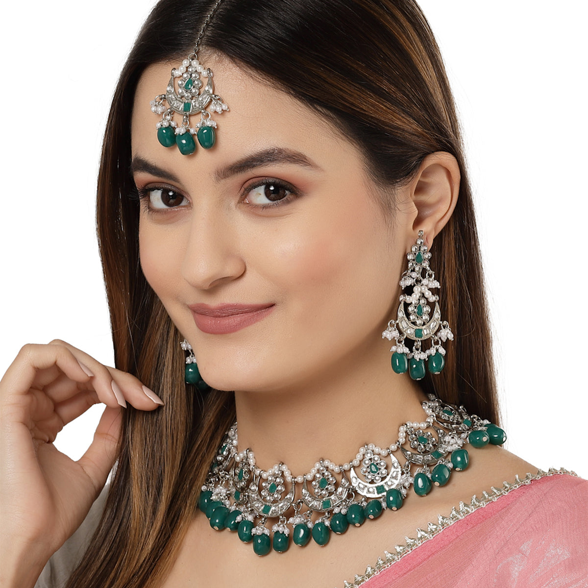 - Karatcart Oxidised Silver Green Tumble Kundan Choker Necklace Set. It is made with high-quality Kundan Stones which makes them very skin-friendly. Perfect for Weddings, Parties, Festivals, and Traditional Occasions. Gracefully pair Saree, Kurti, or any Indo-western outfit to enhance your look. These are made from toxic-free materials which are Anti-Allergic and Safe for the skin.