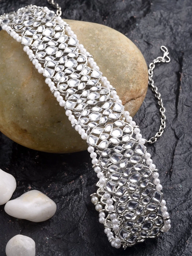 - Karatcart Oxidised Silver Handcrafted Embellished Kundan Hairband for Women. It is made with high-quality Kundan Stones which makes them very skin-friendly. Perfect for Weddings, Parties, Festivals, and Traditional Occasions.