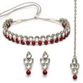Karatcart Oxidised Silver Handcrafted Kundan & Red Beads Studded Necklace Setfor Women