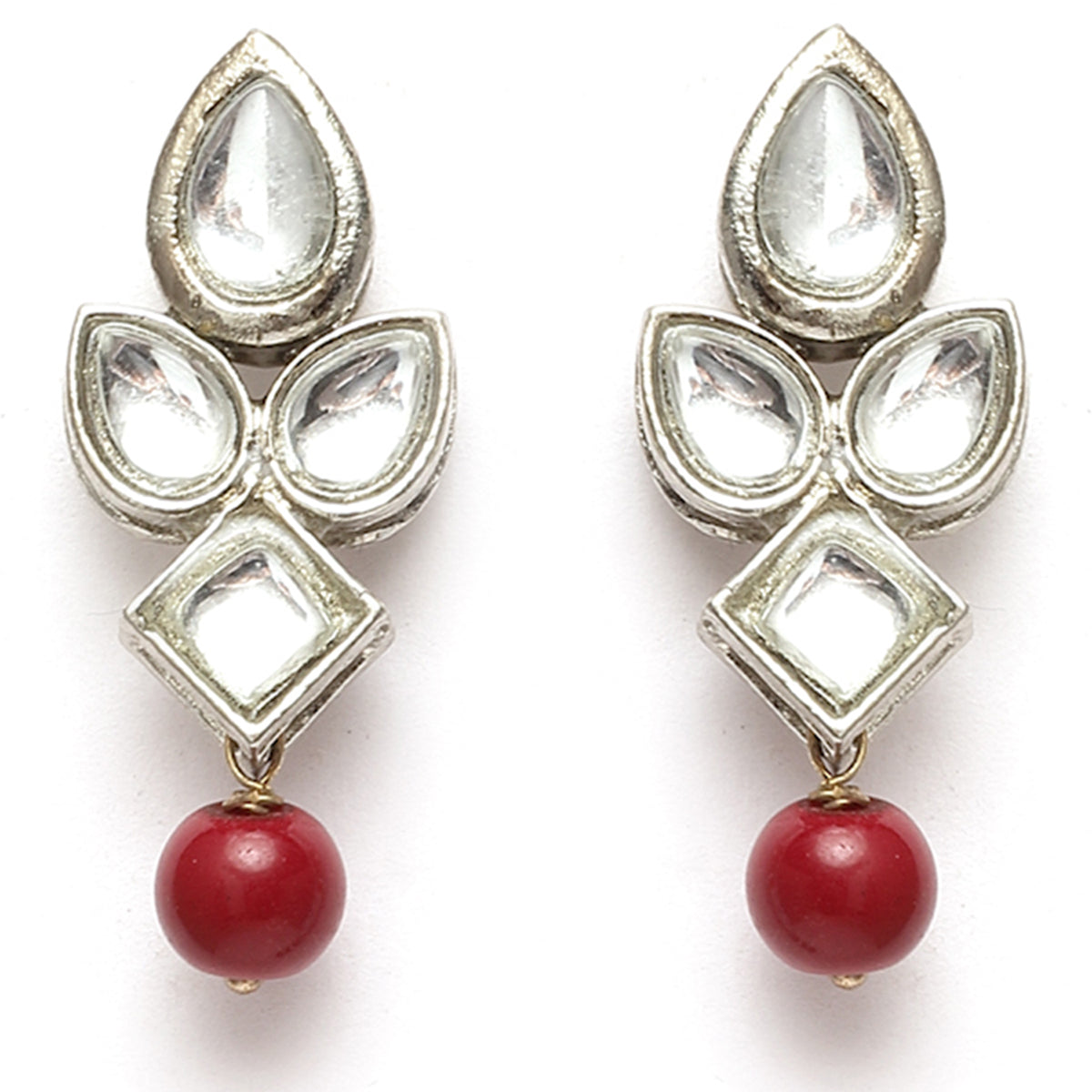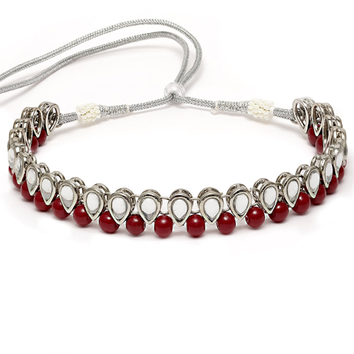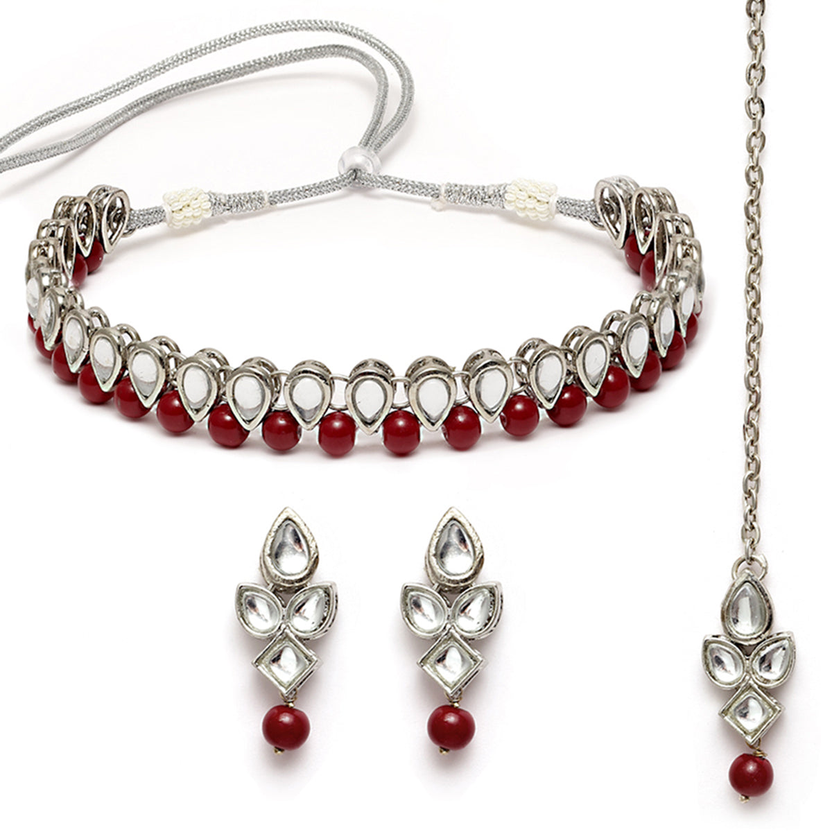- Karatcart Oxidised Silver Handcrafted Kundan & Red Beads Studded Necklace Set. It is made with high-quality Kundan Stones which makes them very skin-friendly. Perfect for Weddings, Parties, Festivals, and Traditional Occasions. Gracefully pair Saree, Kurti, or any Indo-western outfit to enhance your look. These are made from toxic-free materials which are Anti-Allergic and Safe for the skin.