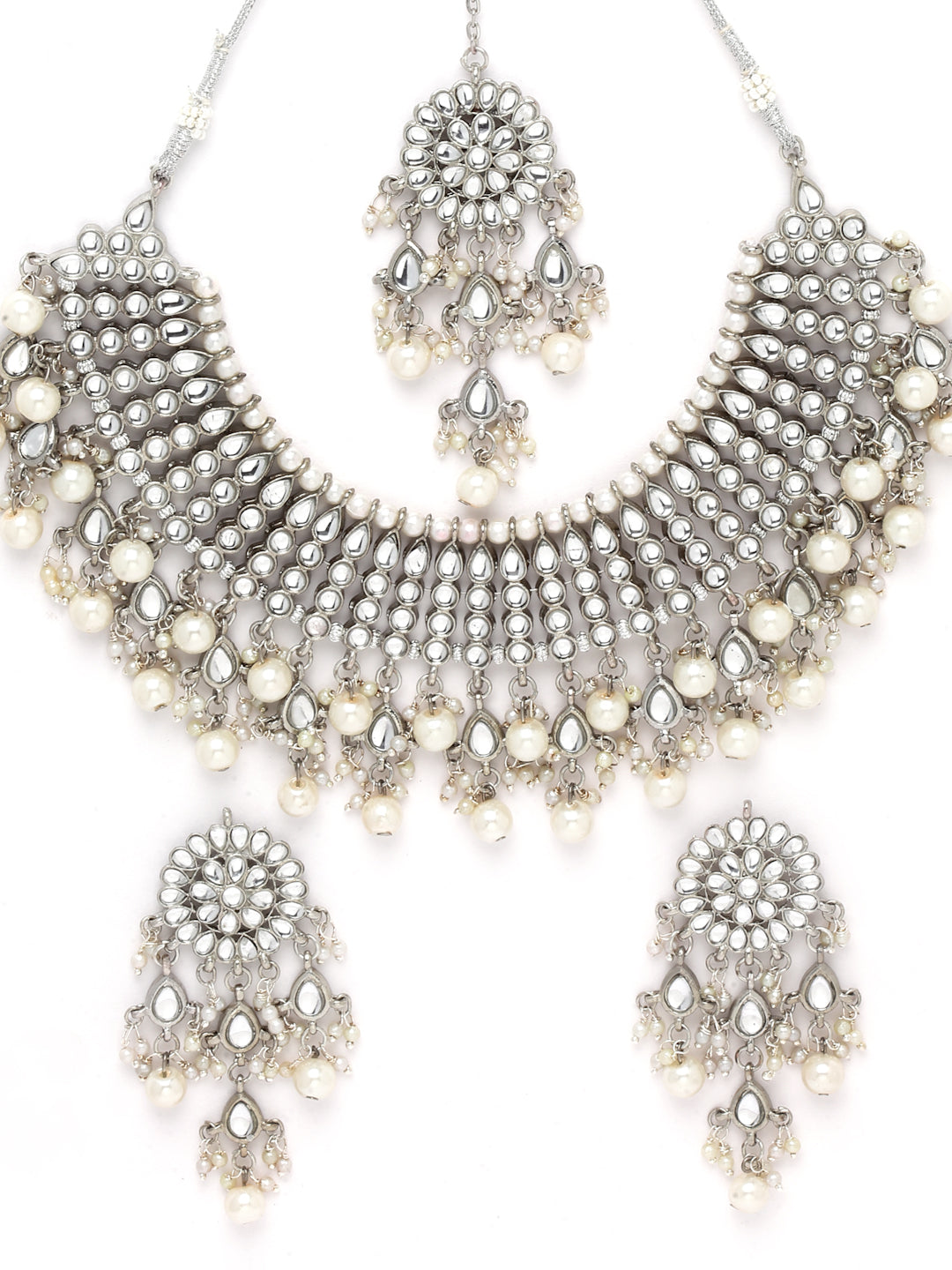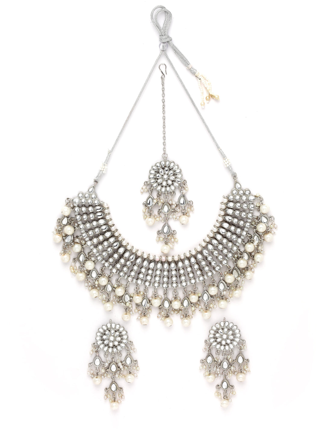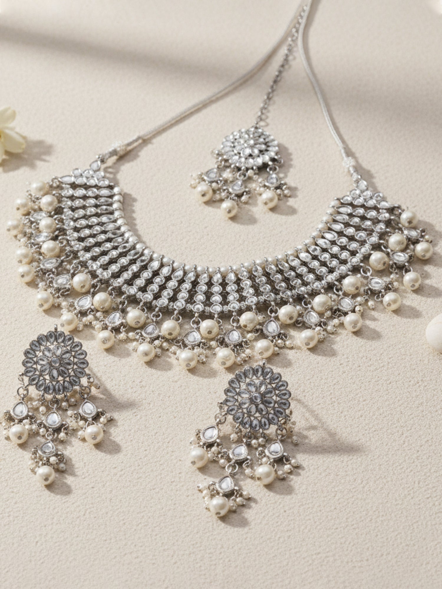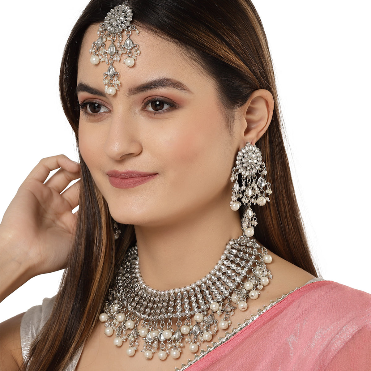 - Karatcart Oxidised Silver Handcrafted Pearl Kundan Choker Necklace Set. It is made with high-quality Kundan Stones which makes them very skin-friendly. Perfect for Weddings, Parties, Festivals, and Traditional Occasions. Gracefully pair Saree, Kurti, or any Indo-western outfit to enhance your look. These are made from toxic-free materials which are Anti-Allergic and Safe for the skin.