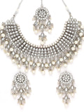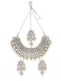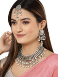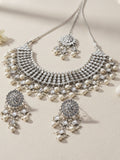 Karatcart Oxidised Silver Handcrafted Pearl Kundan Choker Necklace Setfor Women
