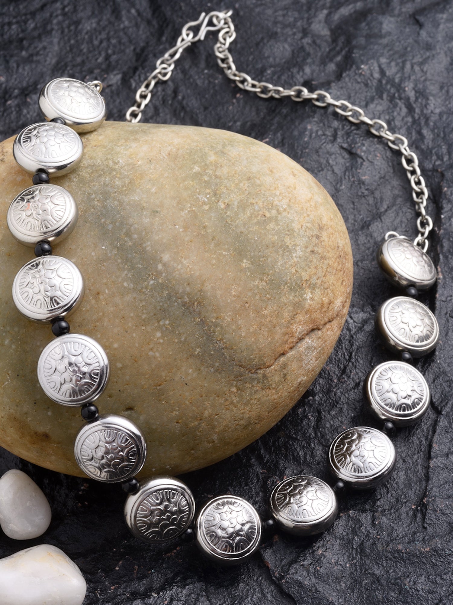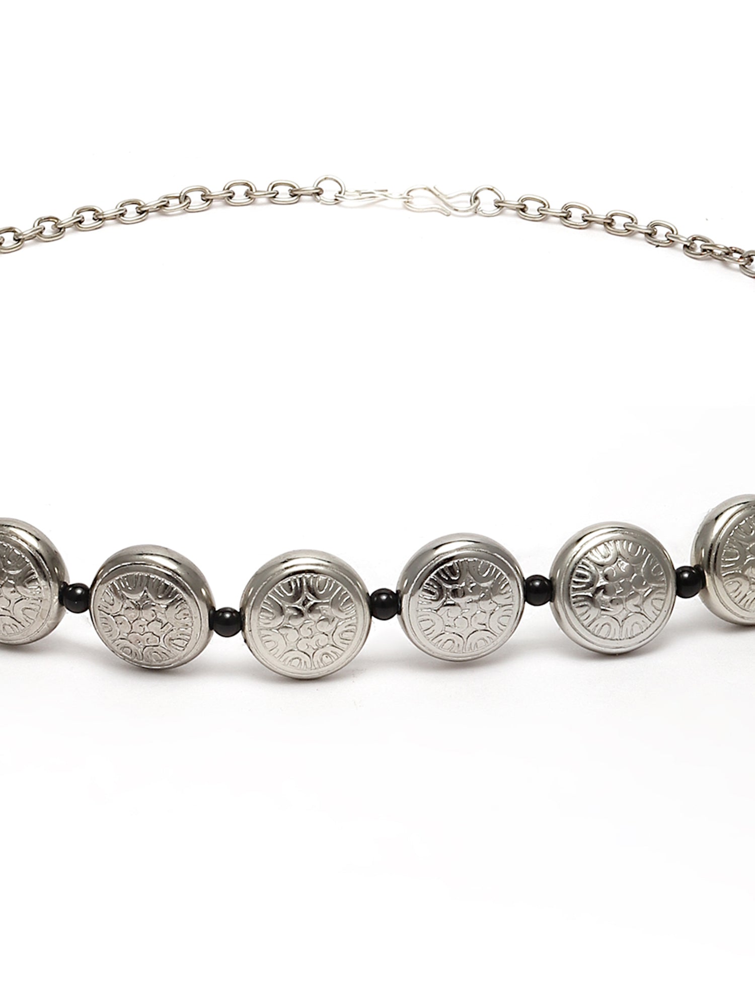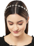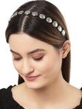 Karatcart Oxidised Silver Kundan and Balck Beads Hairband for Women