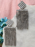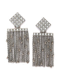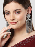 Karatcart Oxidised Silver Kundan Chain Tassel Earrings for Women