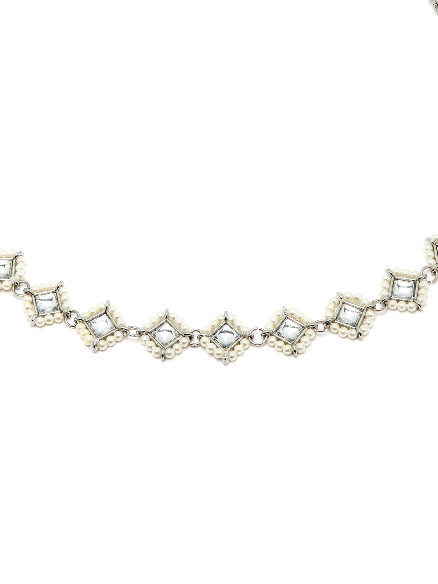 Karatcart Oxidised Silver Pearl Beaded Kundan Hairband for Women