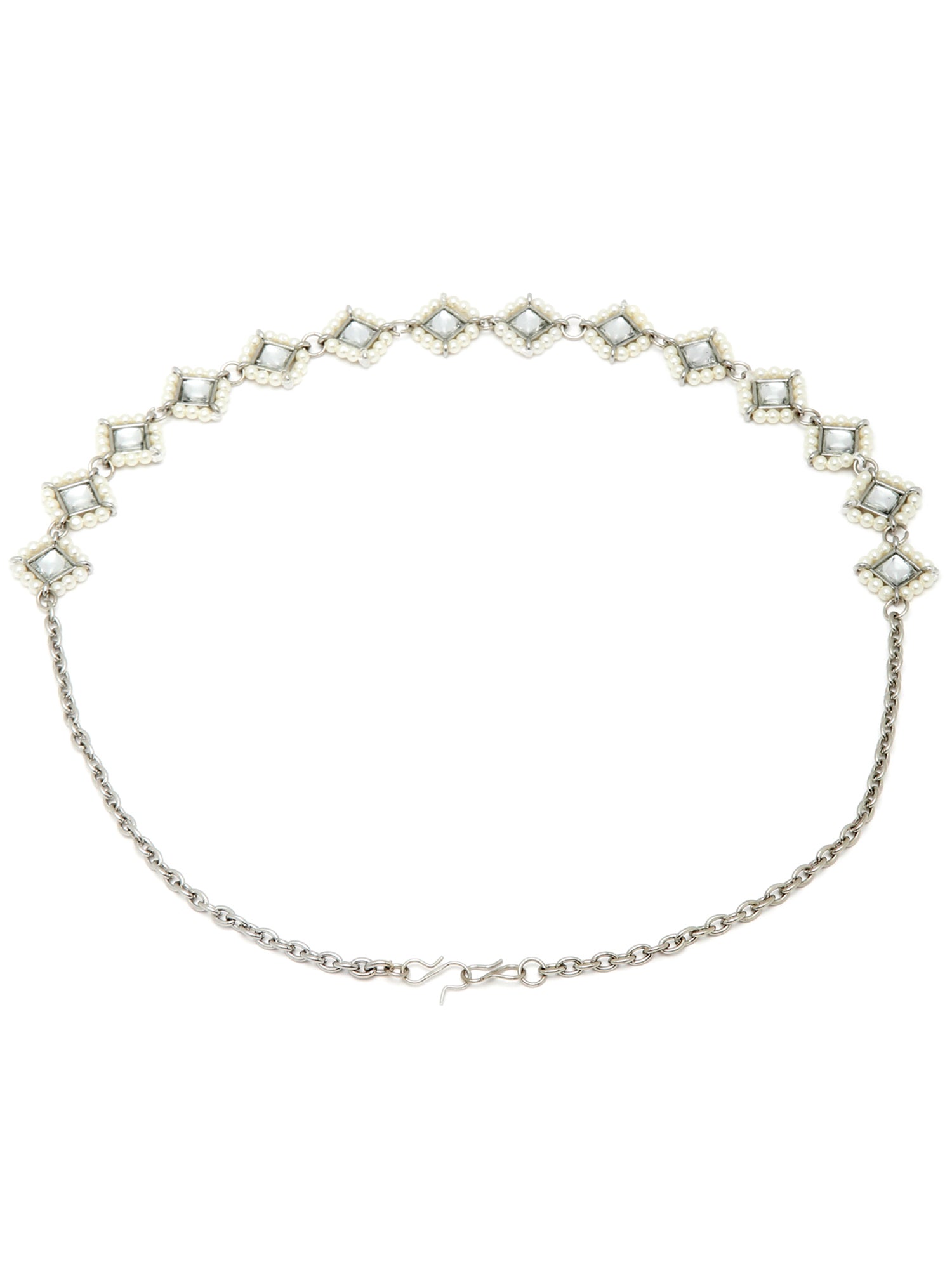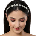 - Karatcart Oxidised Silver Pearl Beaded Kundan Hairband for Women. It's Five Layer Embellished with Kundan for High Durability. Intricate high polish creates glamorous reflections and adds a luxurious look. Perfect for Weddings, Festivals, Traditional Occasions. Best when paired with any Indian outfit.