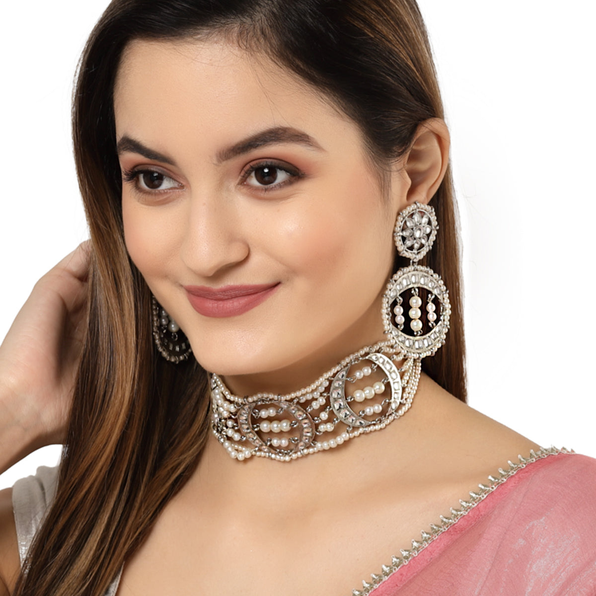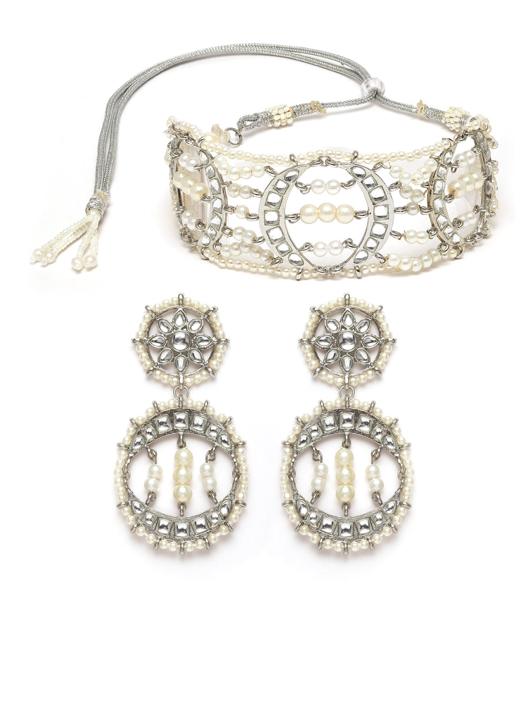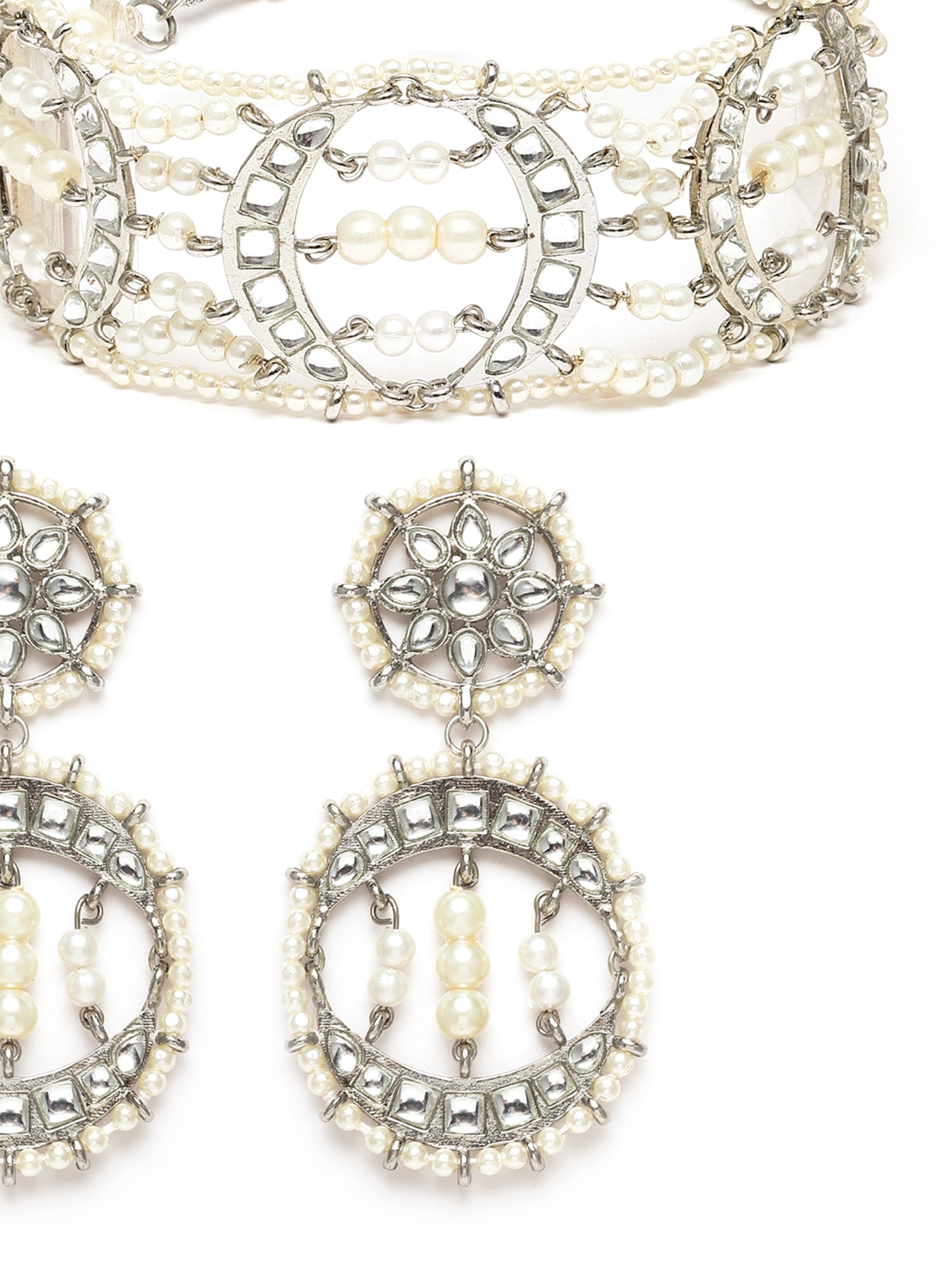 - Karatcart Oxidised Silver Pearl Studded Beaded Choker Necklace Set. It is made with high-quality Kundan Stones which makes them very skin-friendly. Perfect for Weddings, Parties, Festivals, and Traditional Occasions. Gracefully pair Saree, Kurti, or any Indo-western outfit to enhance your look. These are made from toxic-free materials which are Anti-Allergic and Safe for the skin.