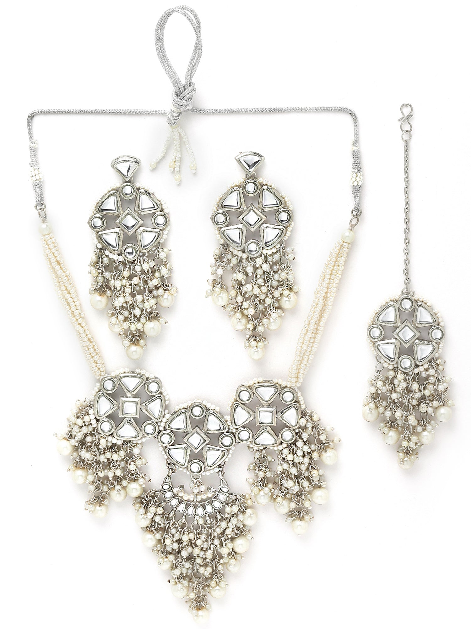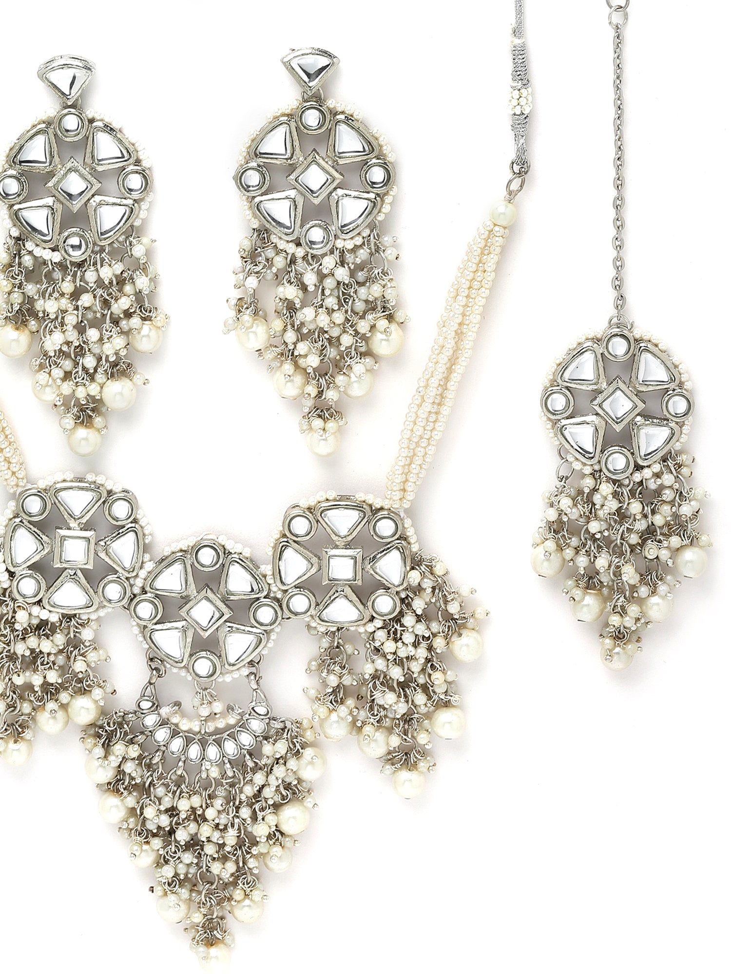 - Karatcart Oxidised Silver Pearl Studded Floral Kundan Choker Neckalce Set. It is made with high-quality Kundan Stones which makes them very skin-friendly. Perfect for Weddings, Parties, Festivals, and Traditional Occasions. Gracefully pair Saree, Kurti, or any Indo-western outfit to enhance your look. These are made from toxic-free materials which are Anti-Allergic and Safe for the skin.
