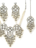 - Necklace Length: 25 cm, Width: 4 cm; Earrings Length: 9 cm, Width: 3.2 cm, Maangtikka Length: 7.5 cm, Width: 4 cm