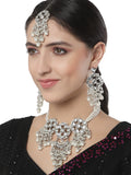 Karatcart Oxidised Silver Pearl Studded Floral Kundan Choker Neckalce Set