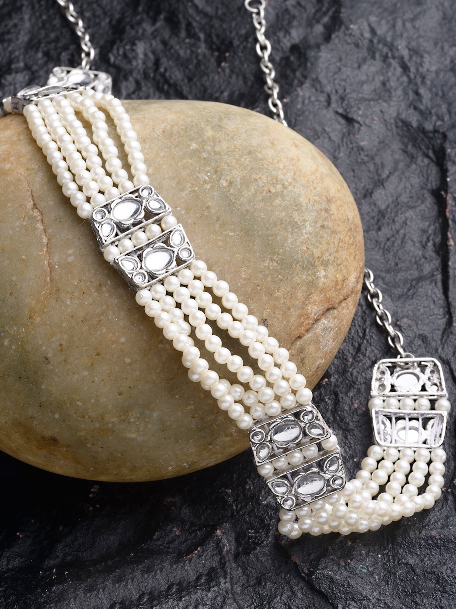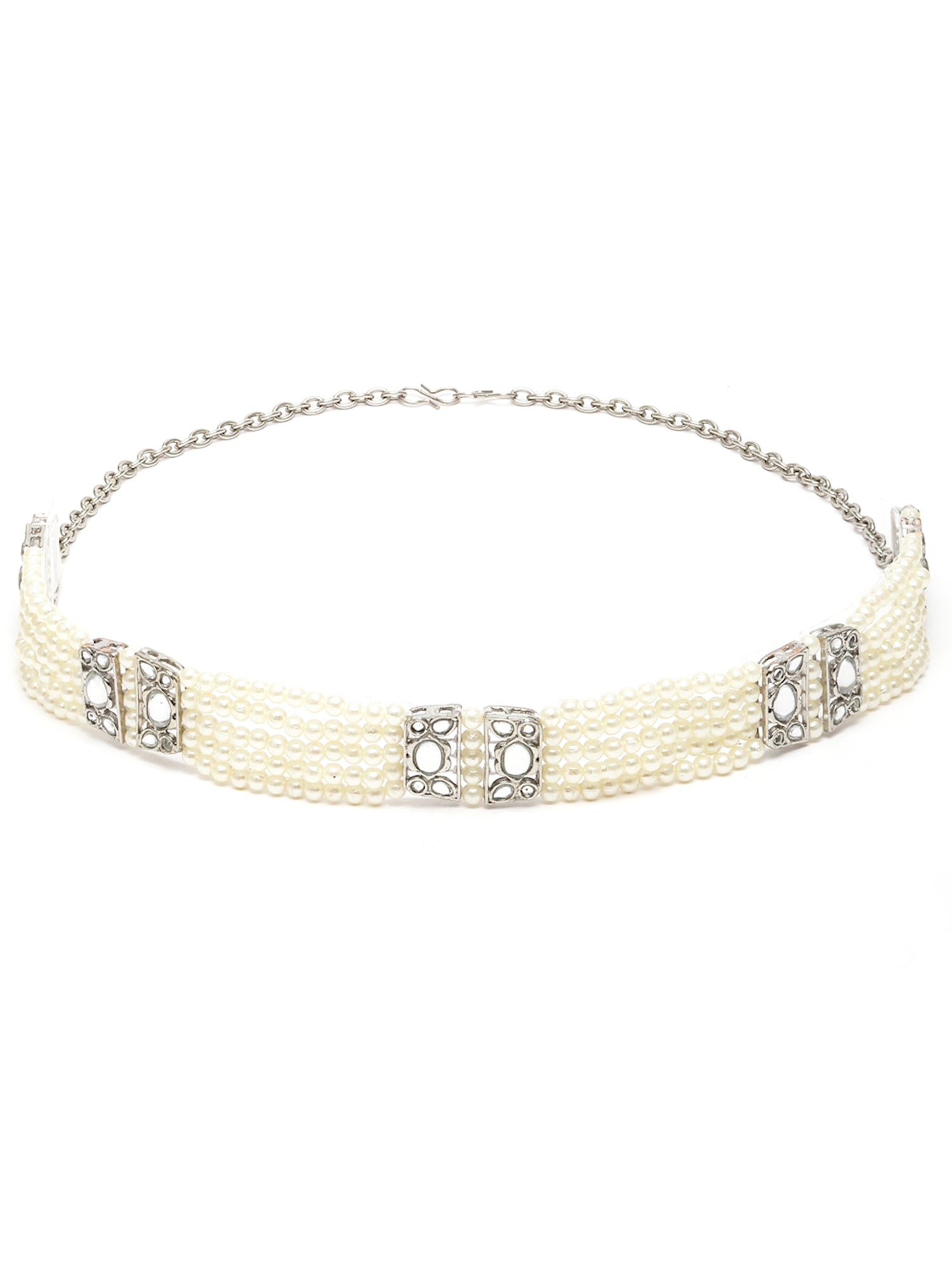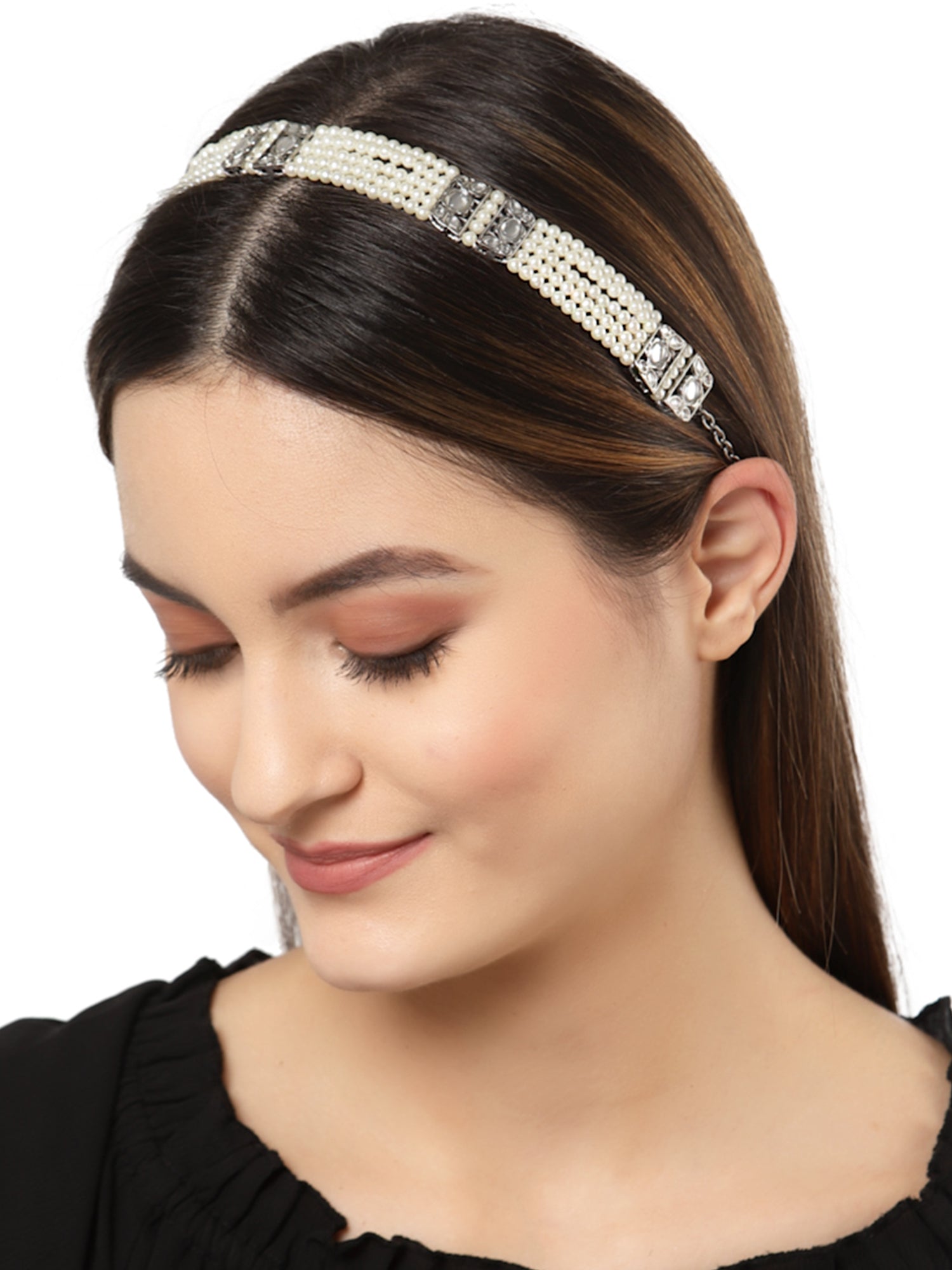 - Karatcart Oxidised Silver Pearl Studded Kundan Hairband for Women. It is made with high-quality Kundan Stones which makes them very skin-friendly. Perfect for Weddings, Parties, Festivals, and Traditional Occasions.