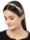 Karatcart Oxidised Silver Pearl Studded Kundan Hairband for Women