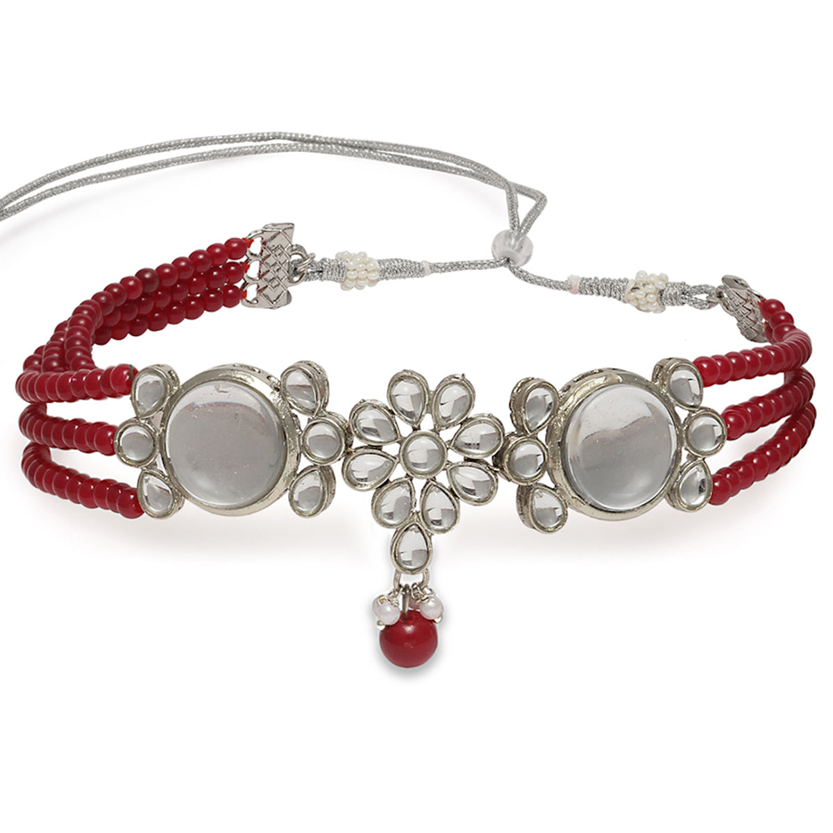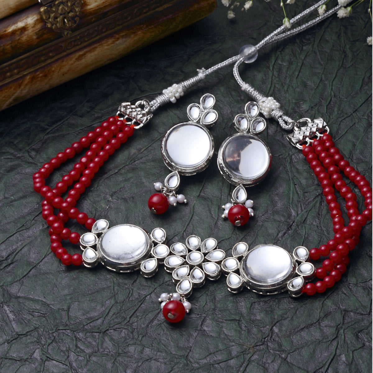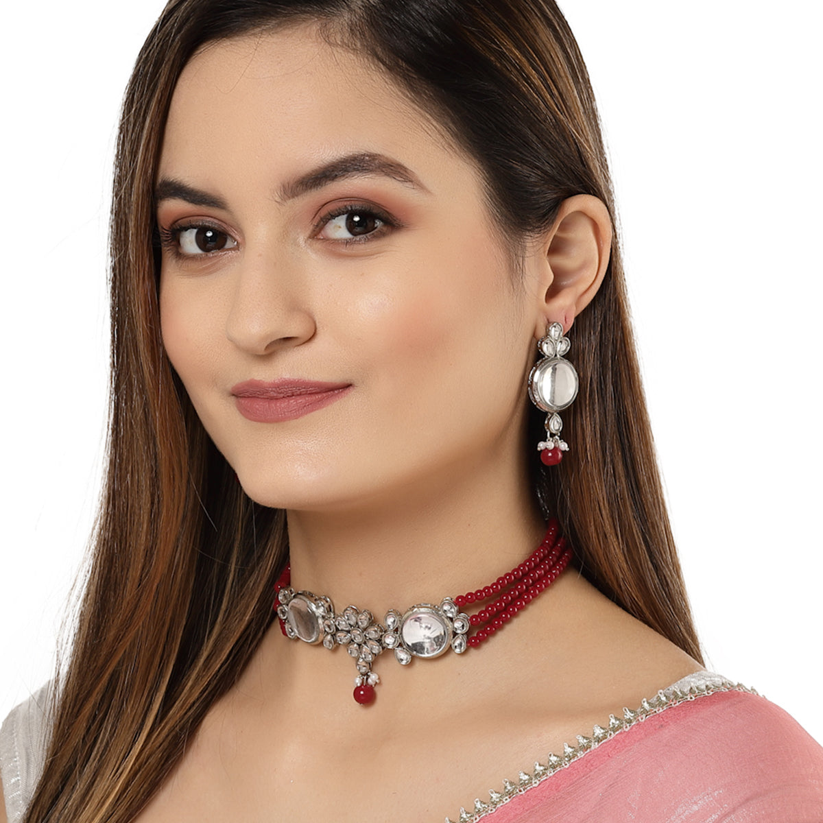 - Karatcart Oxidised Silver Red Multistrand Embellished Choker Necklace Set. It is made with high-quality Kundan Stones which makes them very skin-friendly. Perfect for Weddings, Parties, Festivals, and Traditional Occasions. Gracefully pair Saree, Kurti, or any Indo-western outfit to enhance your look. These are made from toxic-free materials which are Anti-Allergic and Safe for the skin.