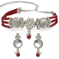 Karatcart Oxidised Silver Red Multistrand Embellished Choker Necklace Setfor Women