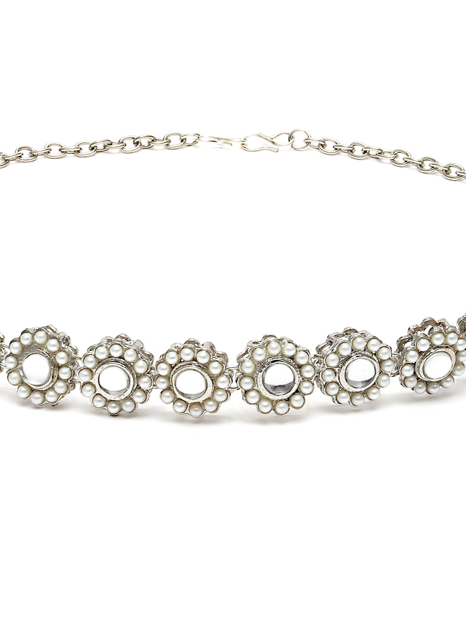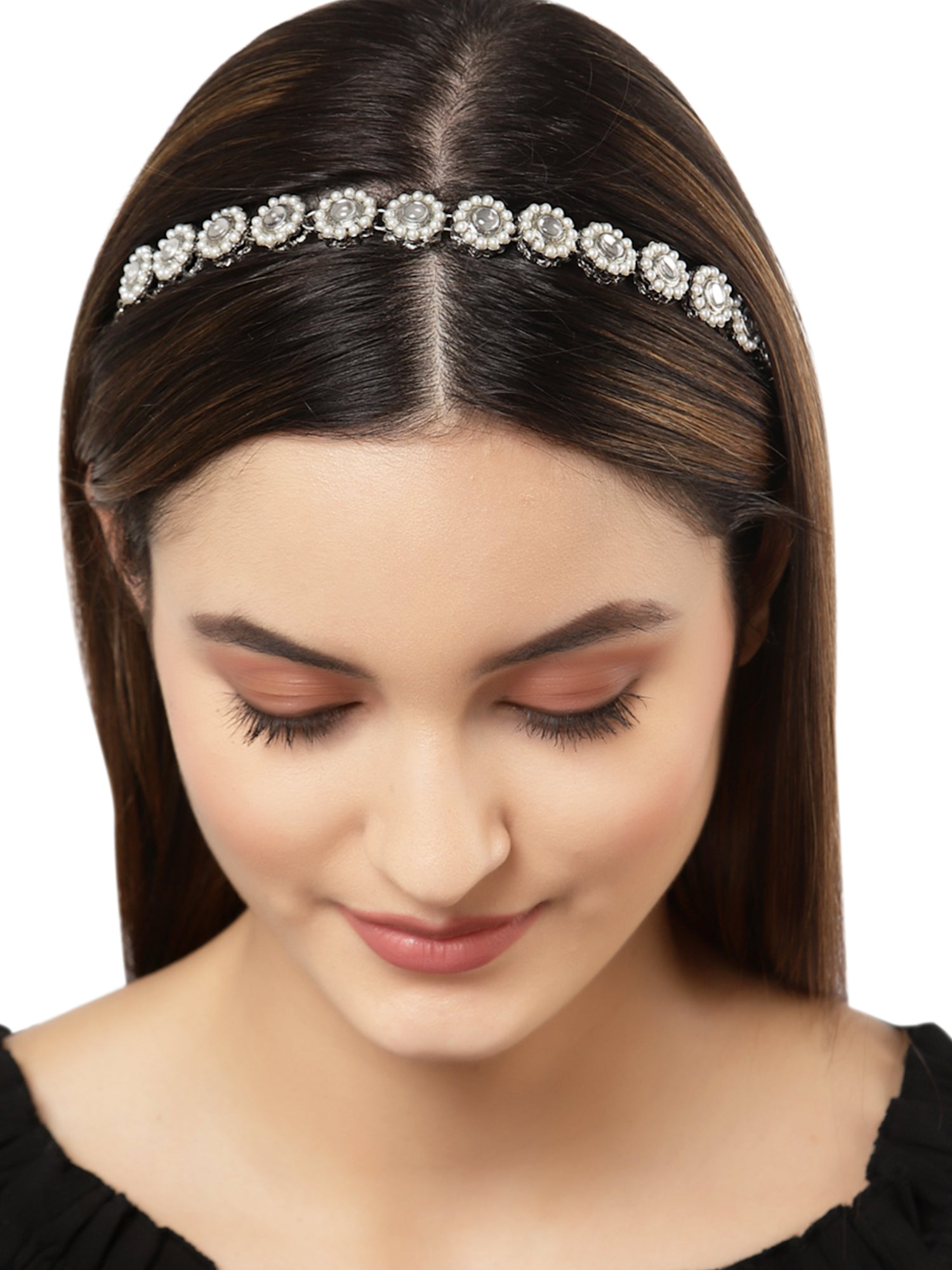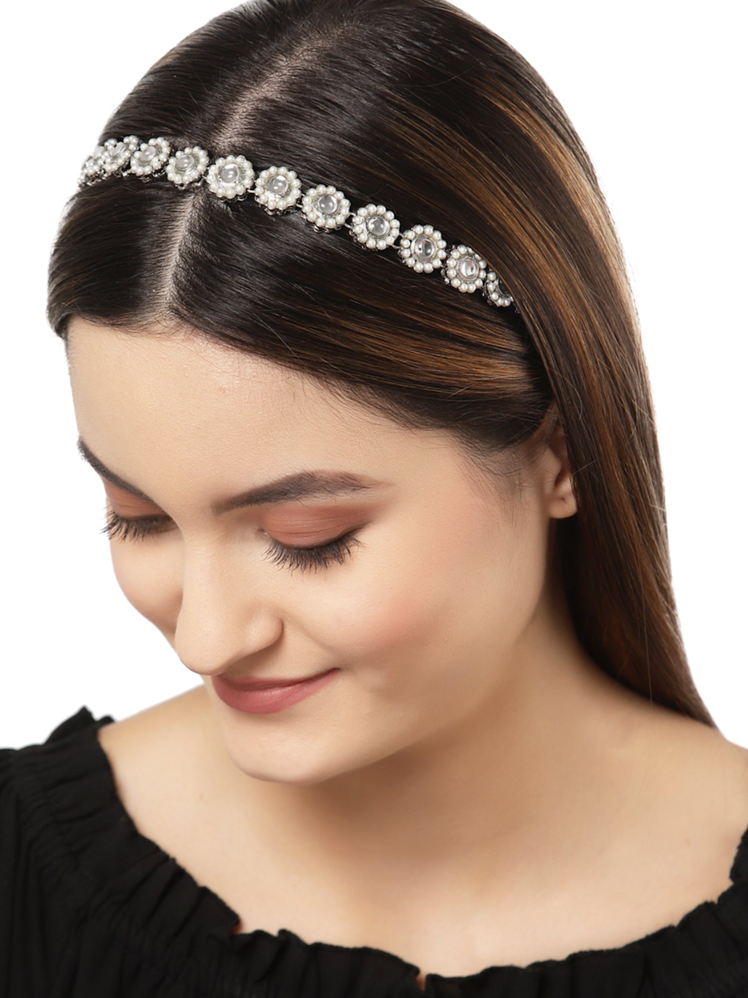 - Karatcart Oxidised Silver Sunflower Pearl Ball Studded Kundan Hairband for Women. It is made with high-quality Kundan Stones which makes them very skin-friendly. Perfect for Weddings, Parties, Festivals, and Traditional Occasions.