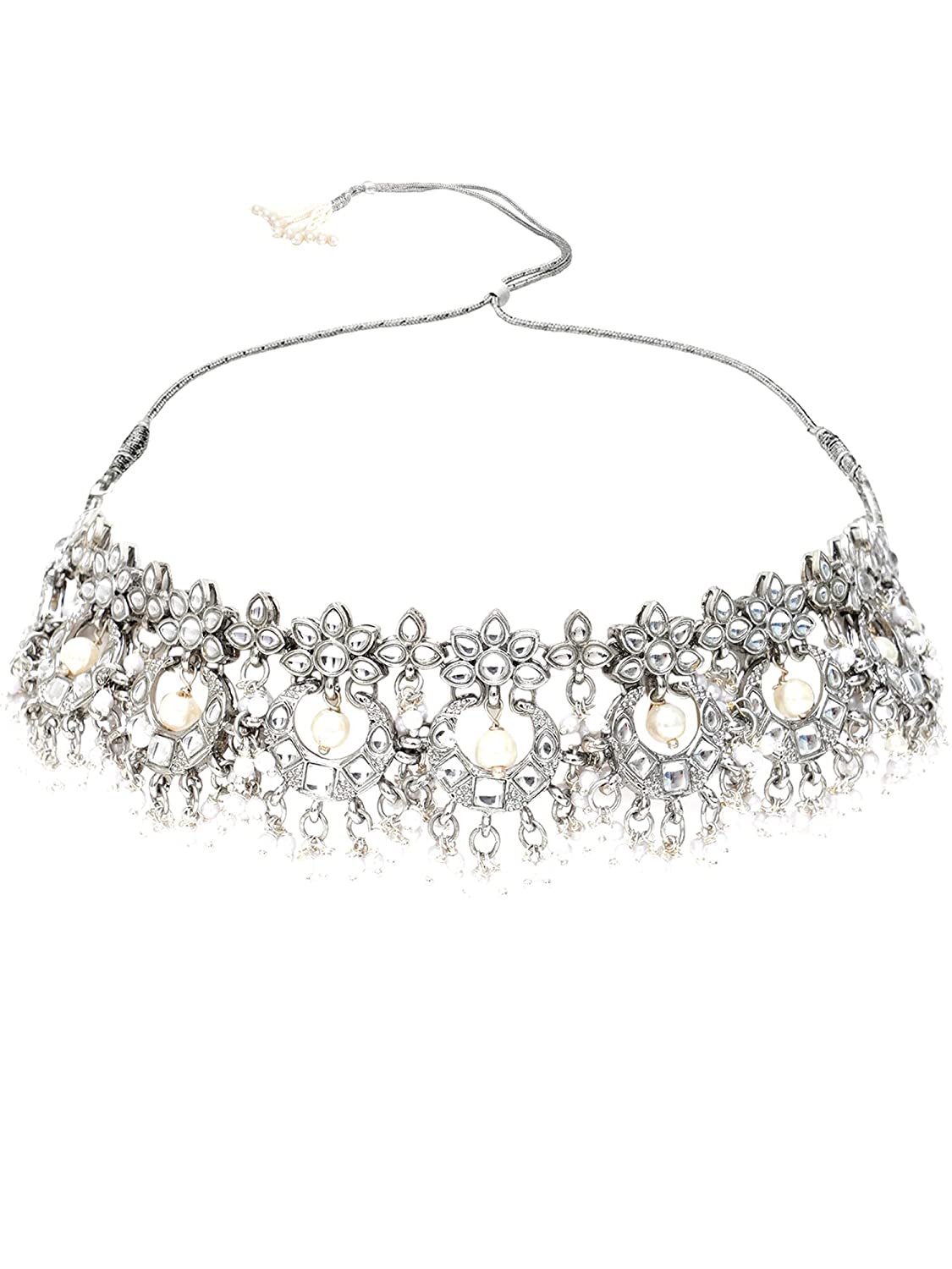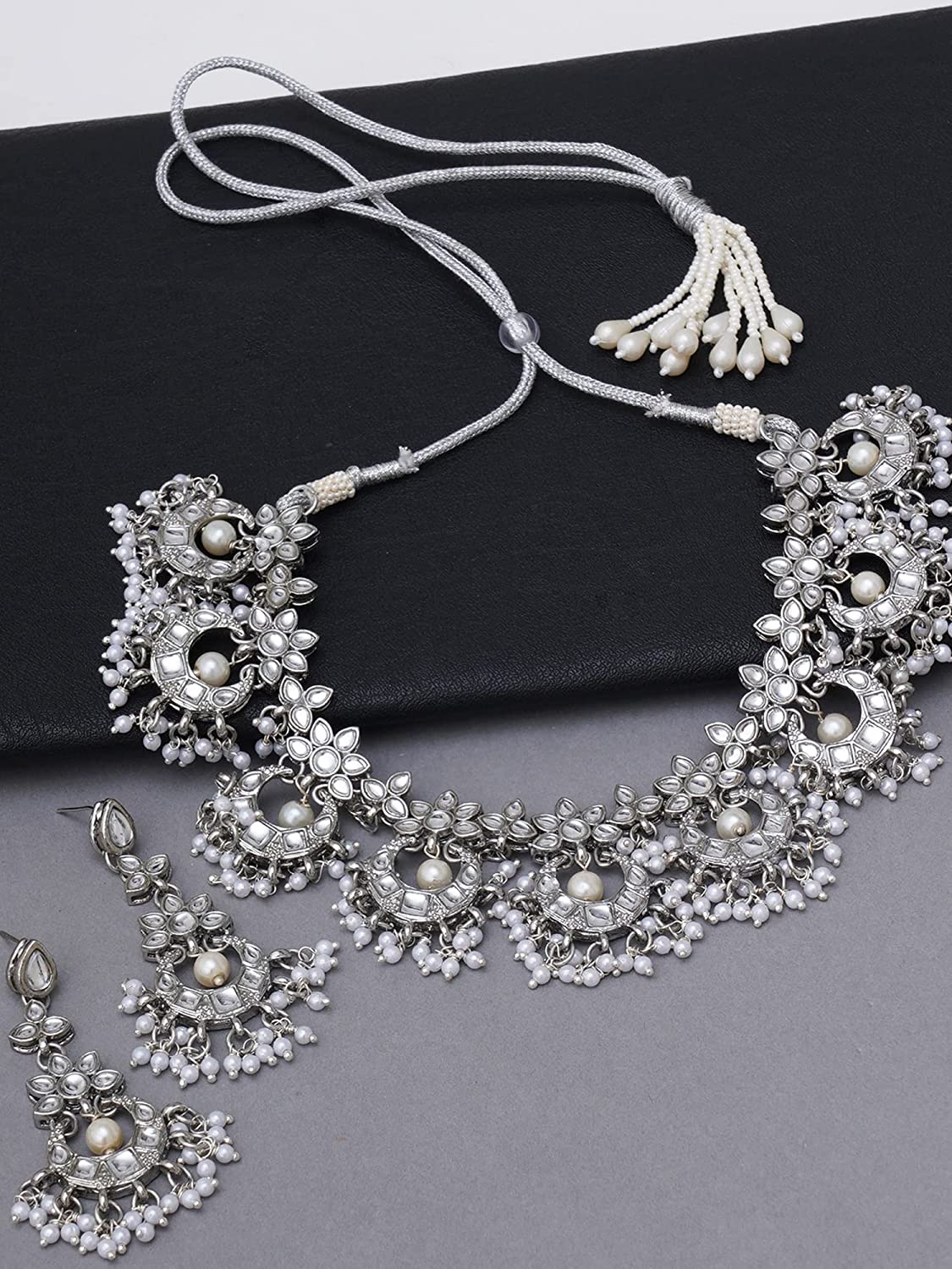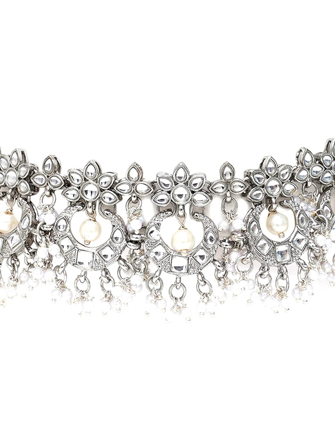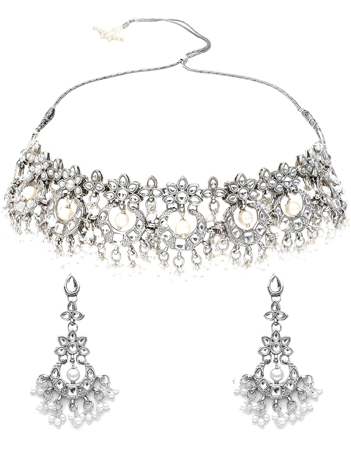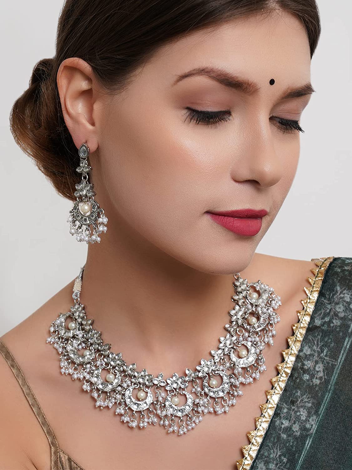 - Karatcart Oxidised Silver White Kundan Choker Necklace Set for Women. It is made with high-quality Kundan Stones which makes them very skin-friendly. Perfect for Weddings, Parties, Festivals, and Traditional Occasions.