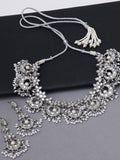 Karatcart Oxidised Silver White Kundan Choker Necklace Set for Women
