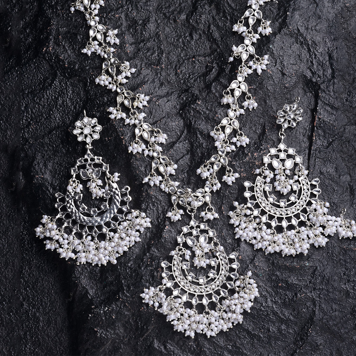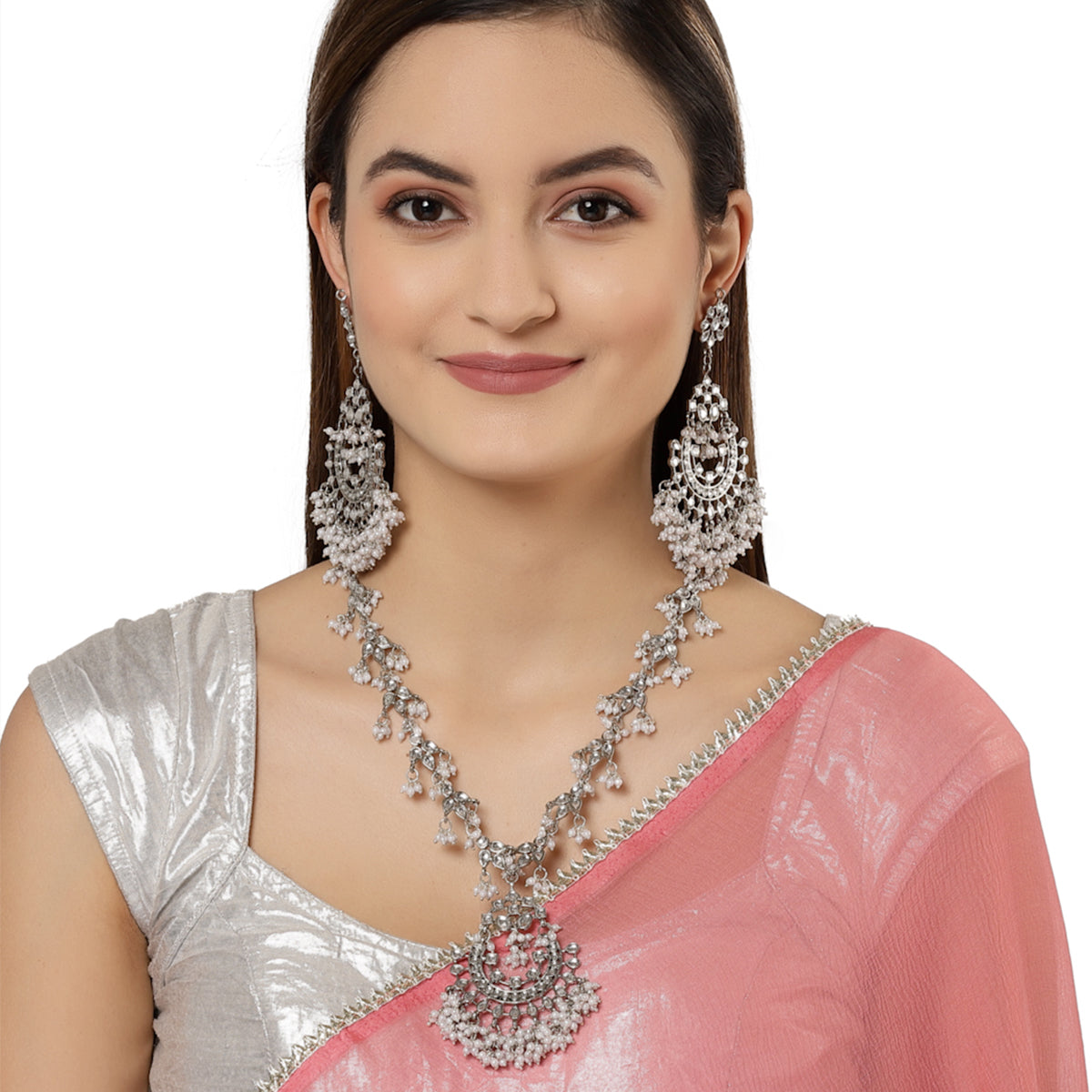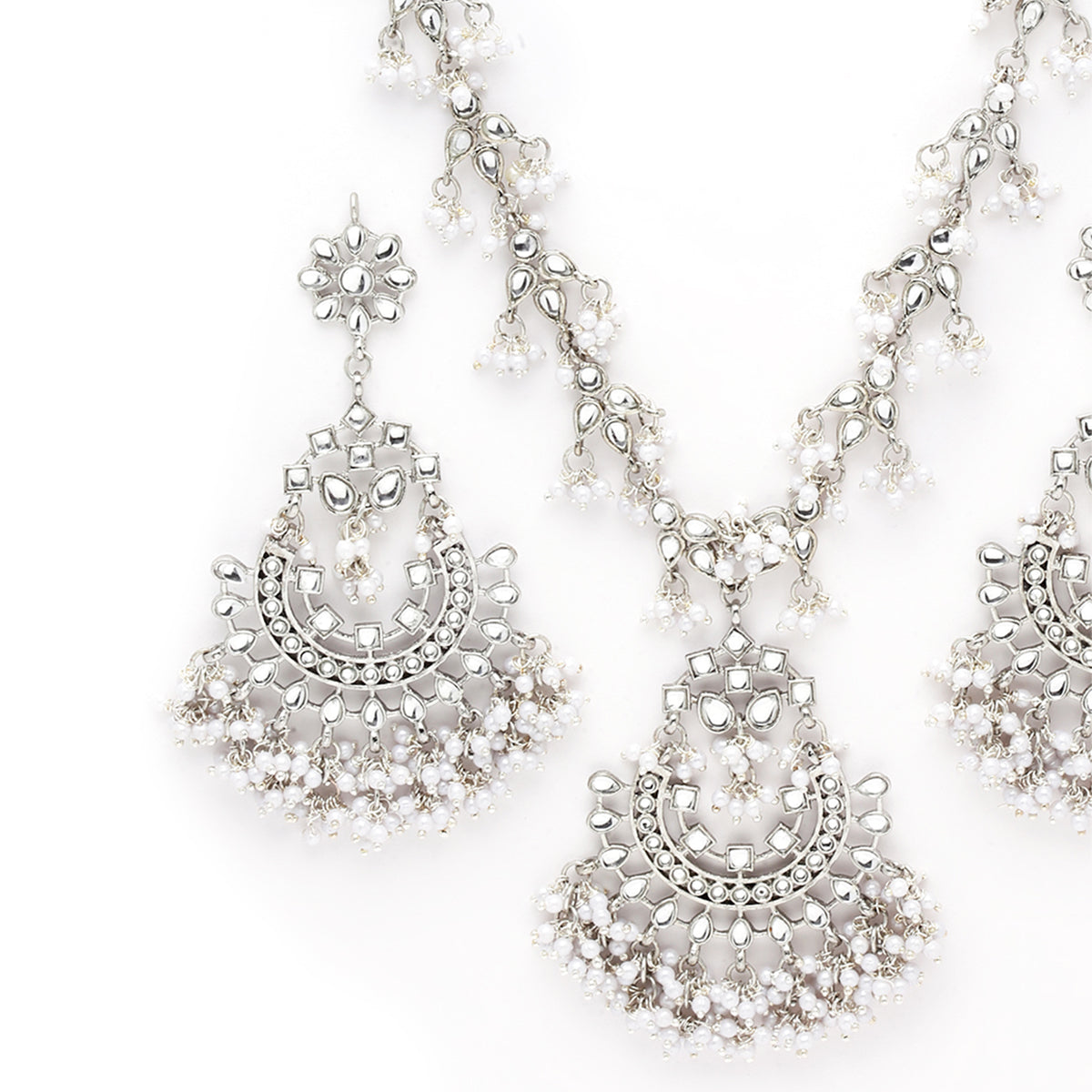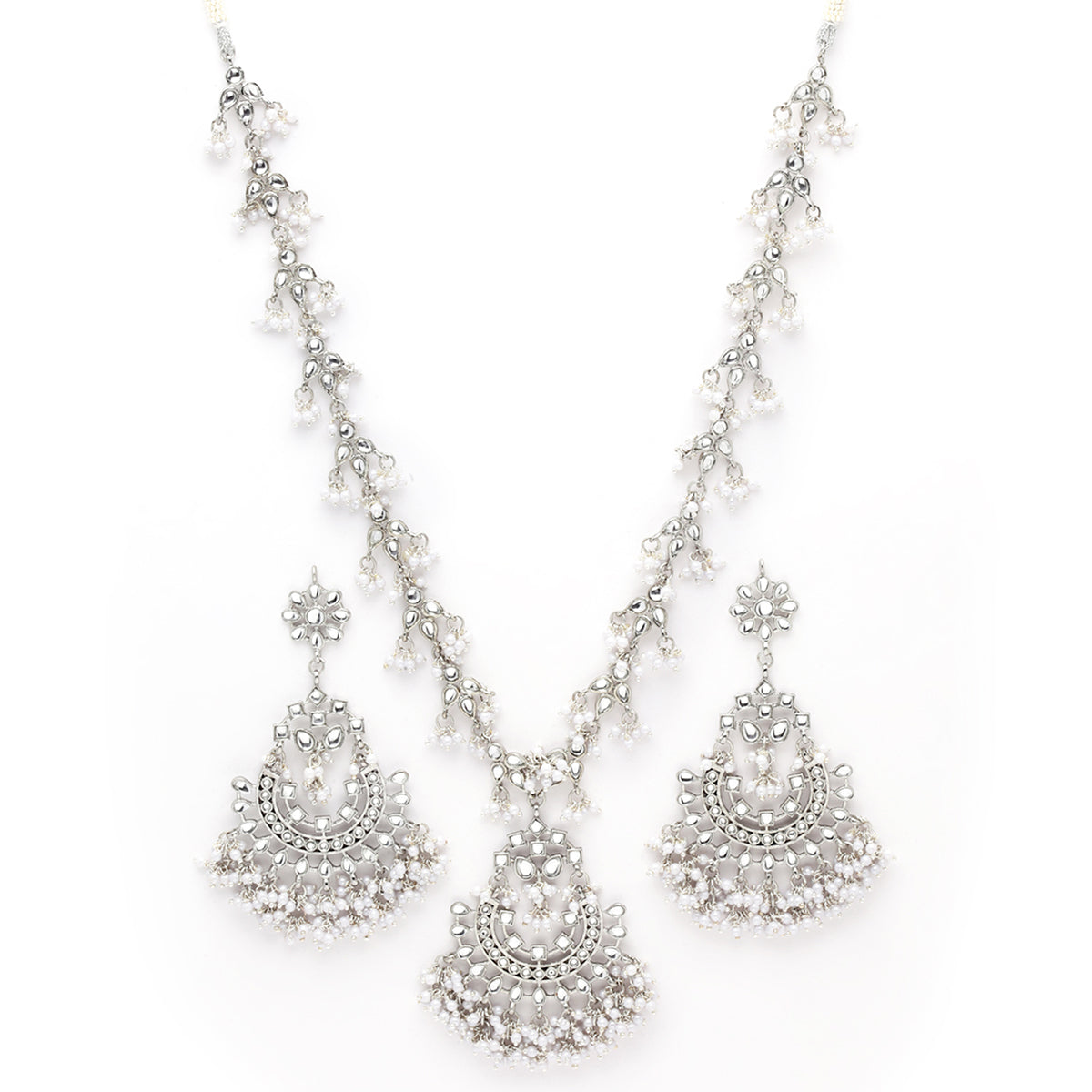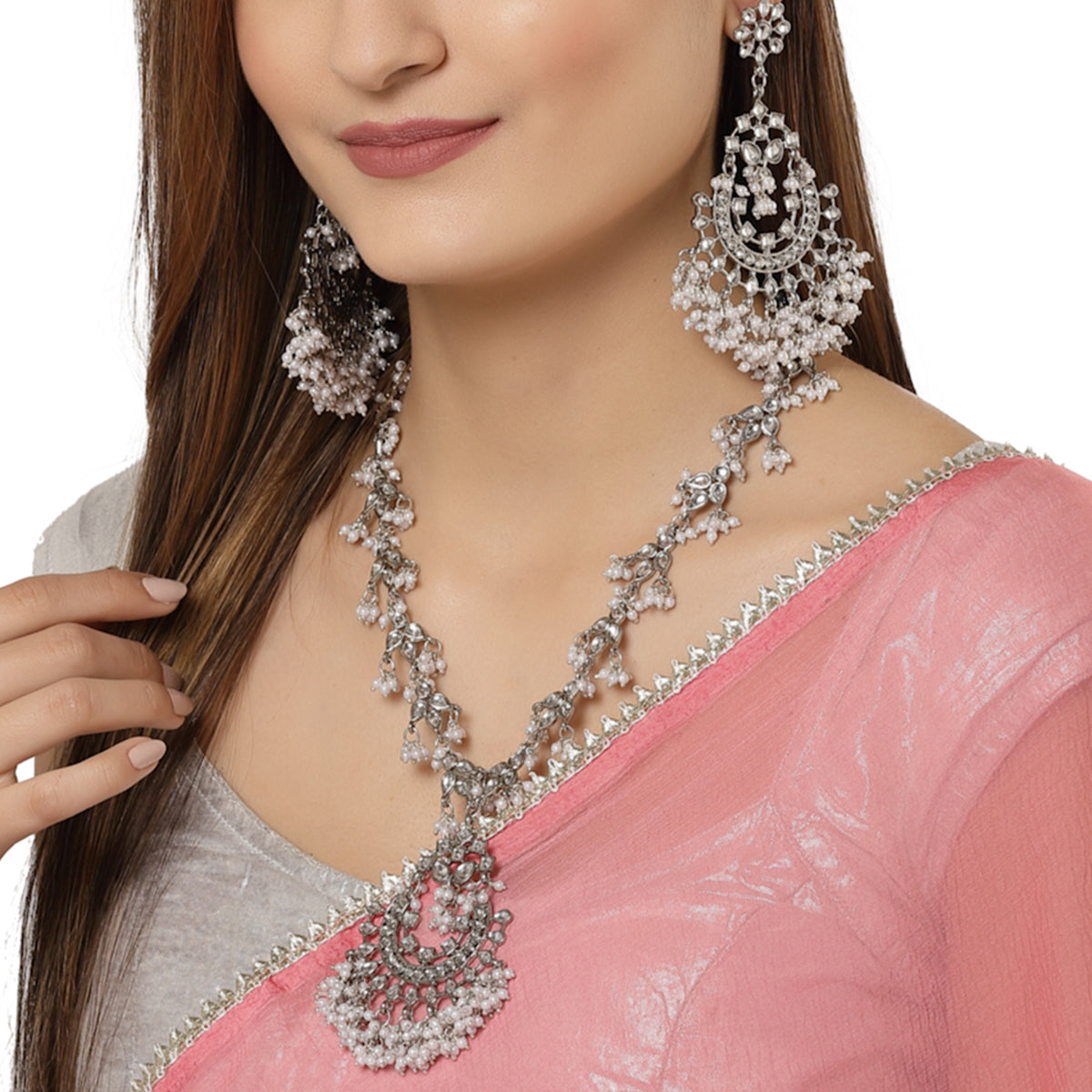 Karatcart Oxidised Silver White Tassel Kundan Rani Haar Necklace Setfor Women