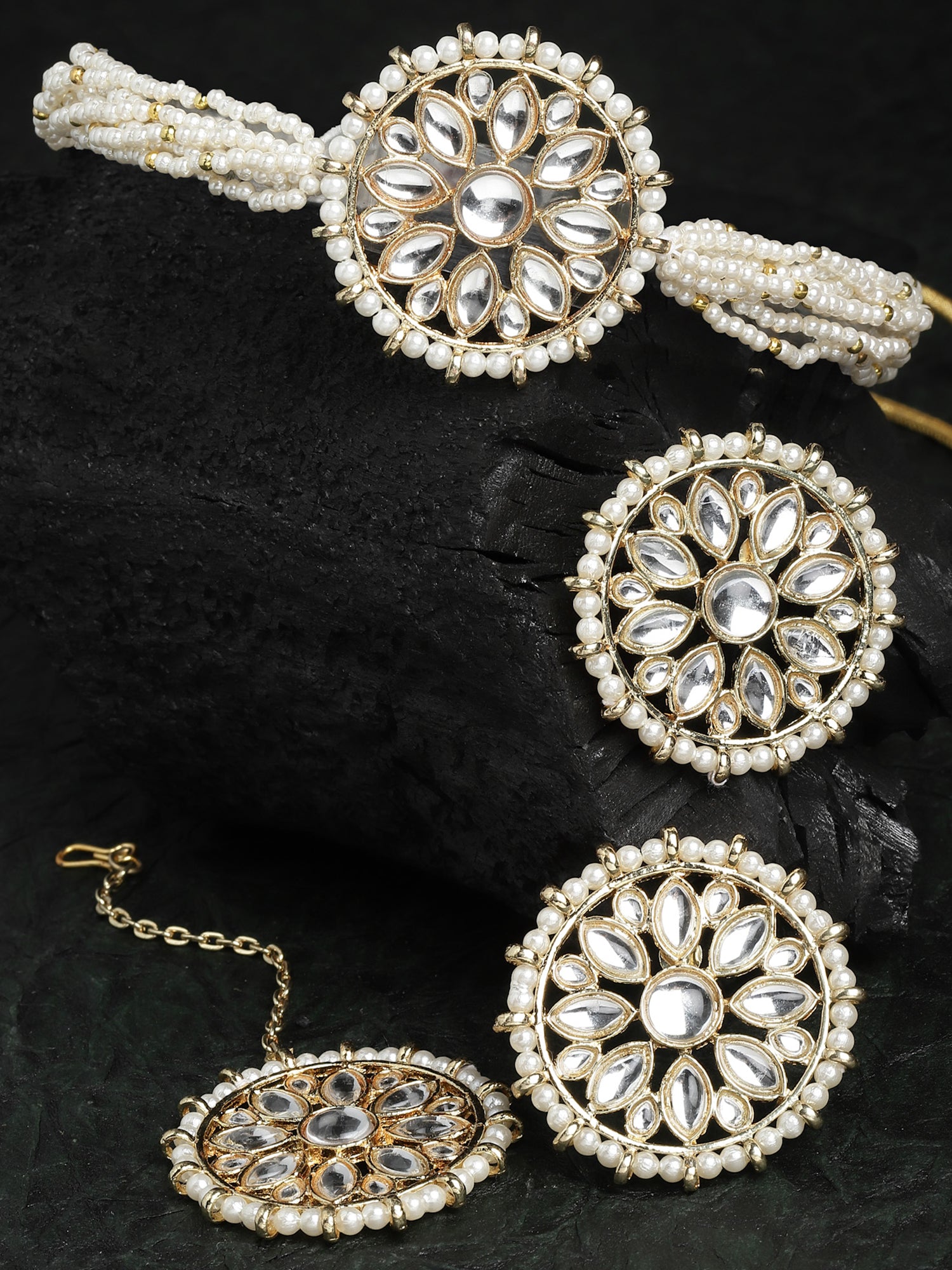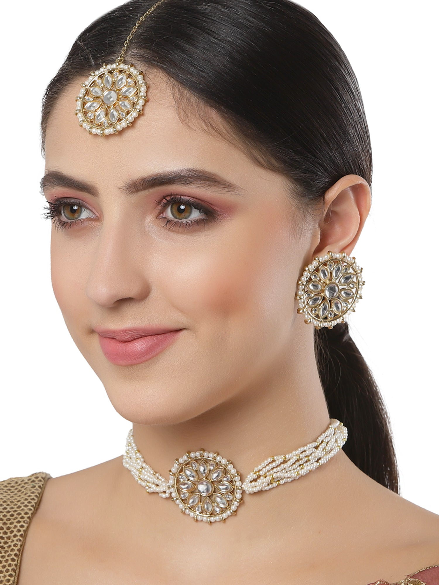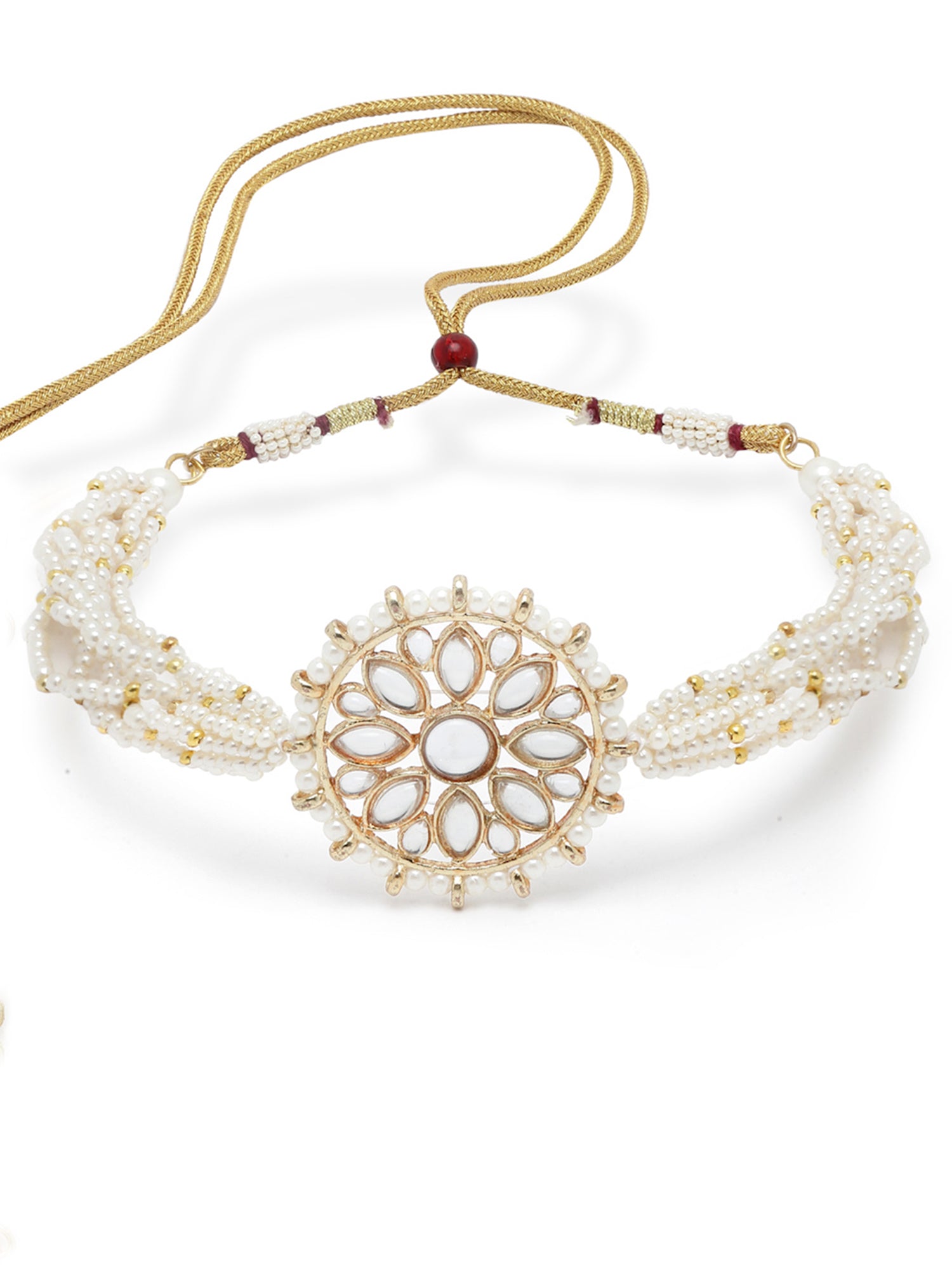 - Karatcart Pearl Beaded Gold Plated Kundan Choker Necklace Set. It is made with high-quality Kundan Stones which makes them very skin-friendly. Perfect for Weddings, Parties, Festivals, and Traditional Occasions. Gracefully pair Saree, Kurti, or any Indo-western outfit to enhance your look. These are made from toxic-free materials which are Anti-Allergic and Safe for the skin.