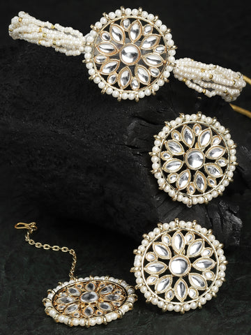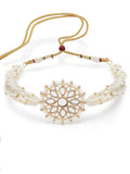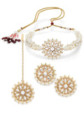 Karatcart Pearl Beaded Gold Plated Kundan Choker Necklace Set
