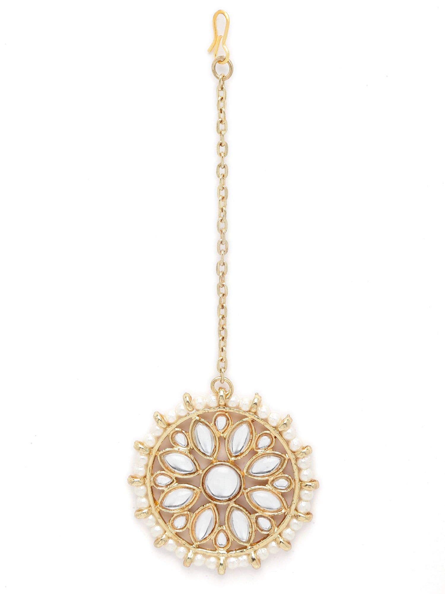- Necklace Length: 22.5 cm, Width: 4.2 cm; Earrings Length: 4.2 cm, Width: 4.2 cm, Maangtikka Length: 4.2 cm, Width: 4.2 cm