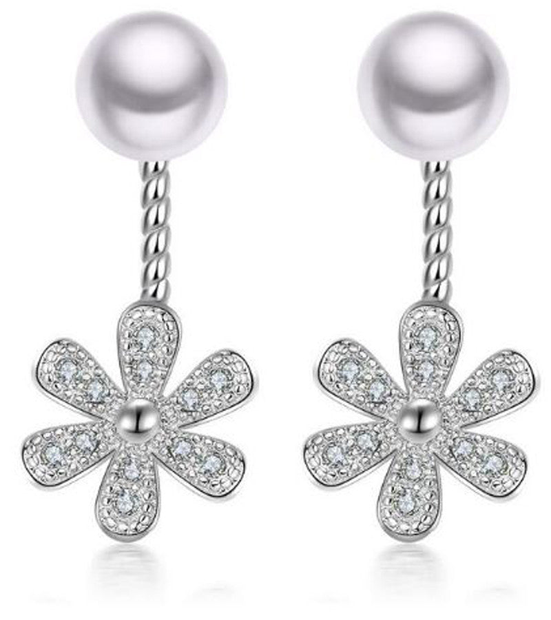 Karatcart Platinum Plated Austrian Crystal Flower Drop Earrings