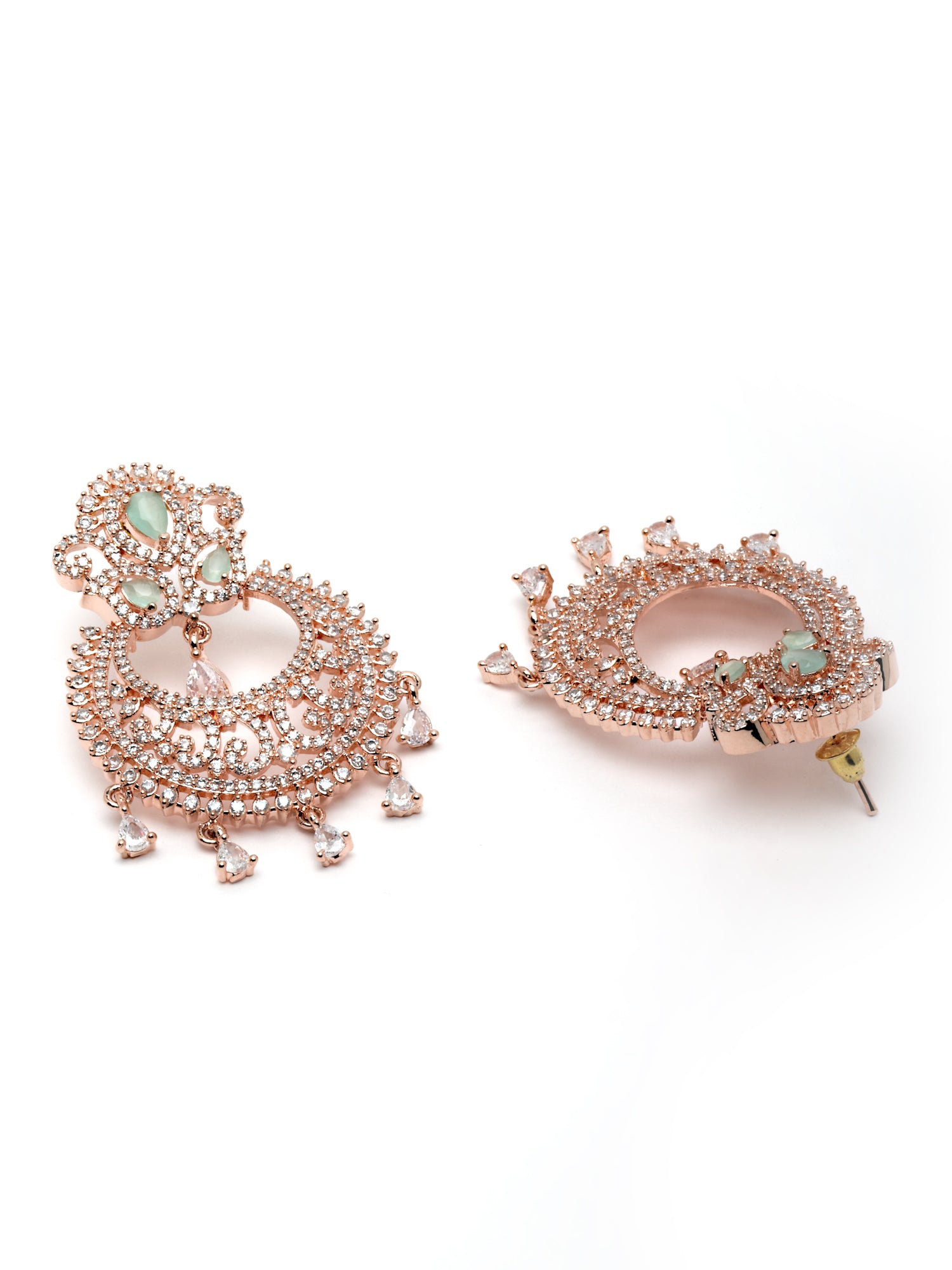 Karatcart Rose Gold Plated American Diamond Studded Chandbali Earrings for Women